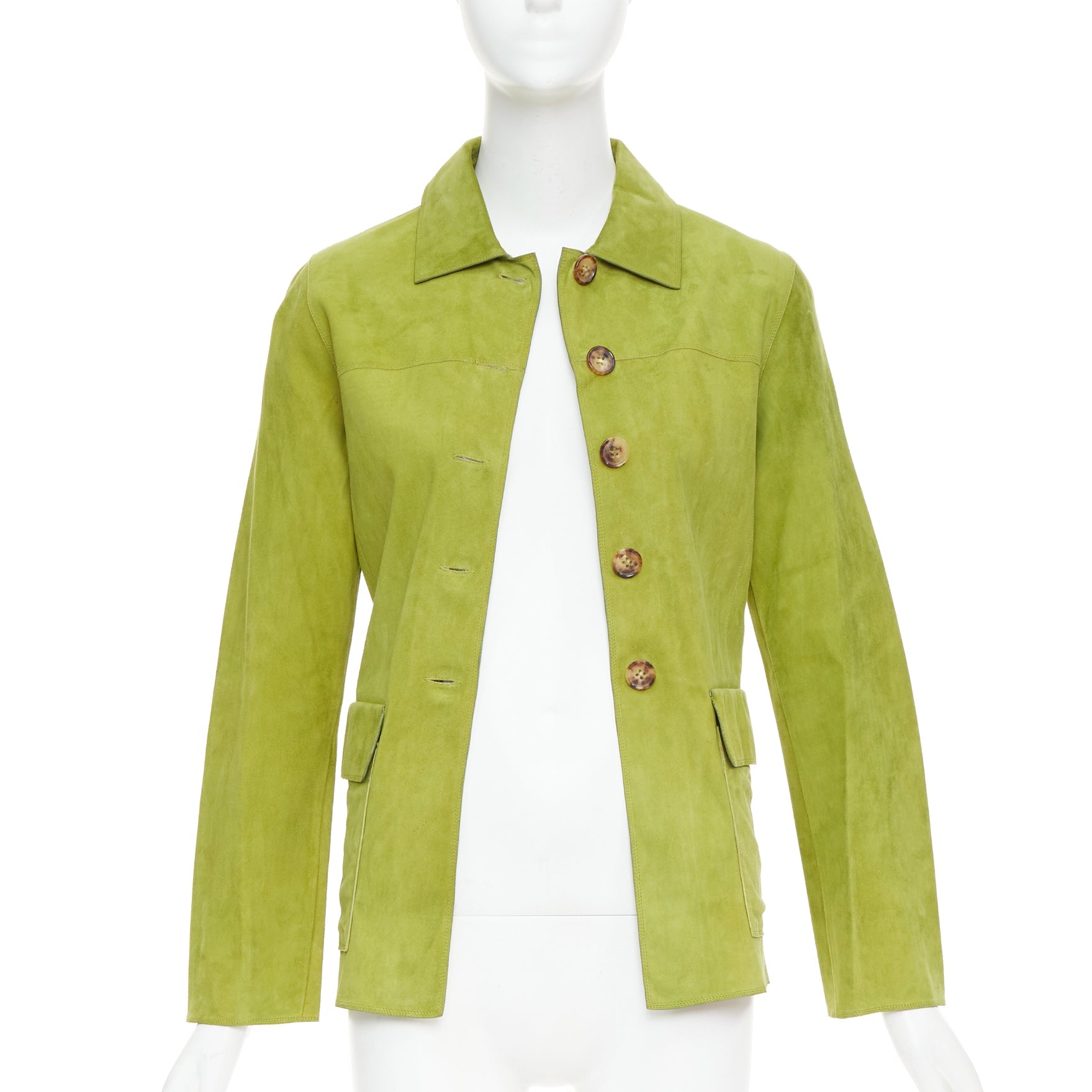 LORO PIANA grass green goat suede brown buttons overshirt jacket IT38 XS