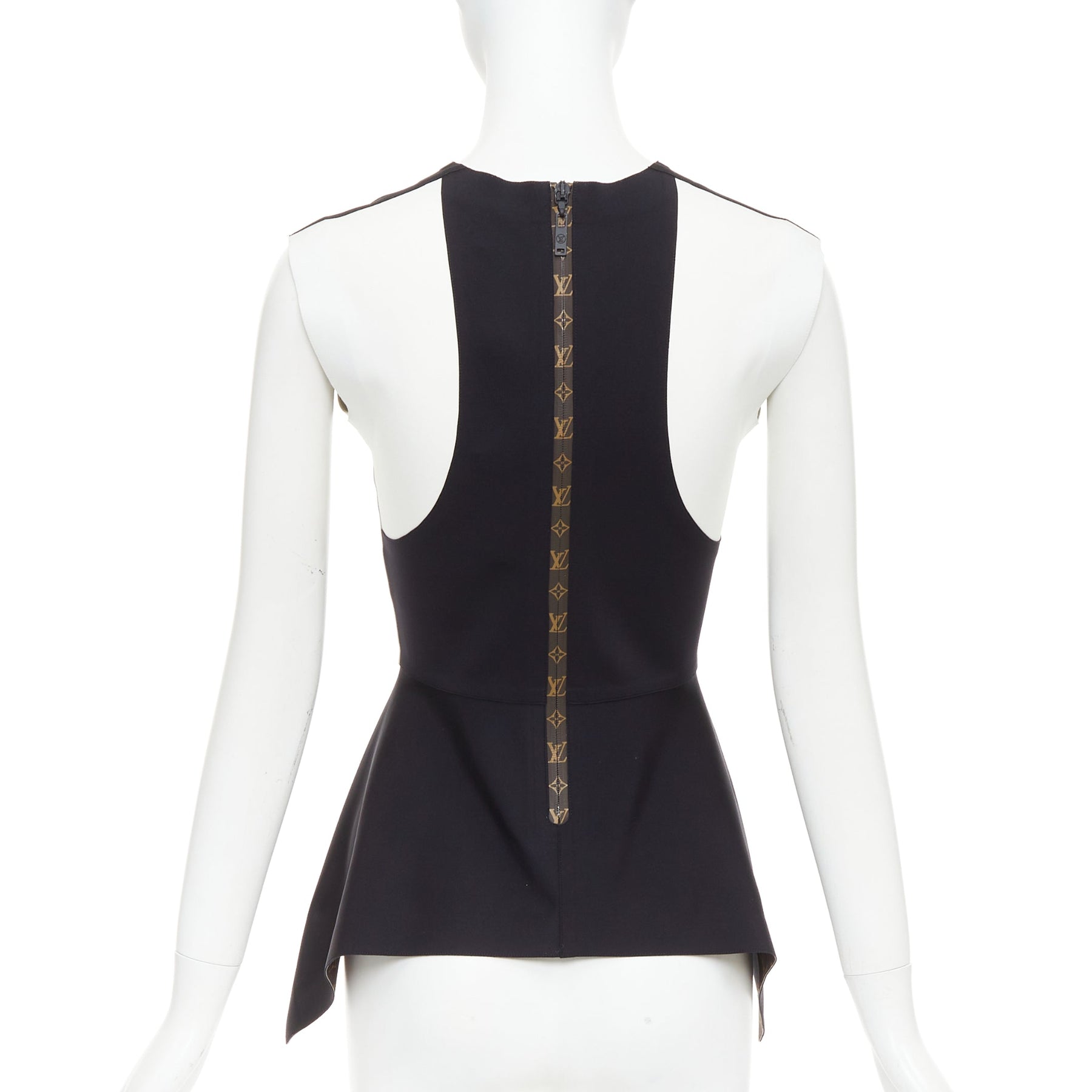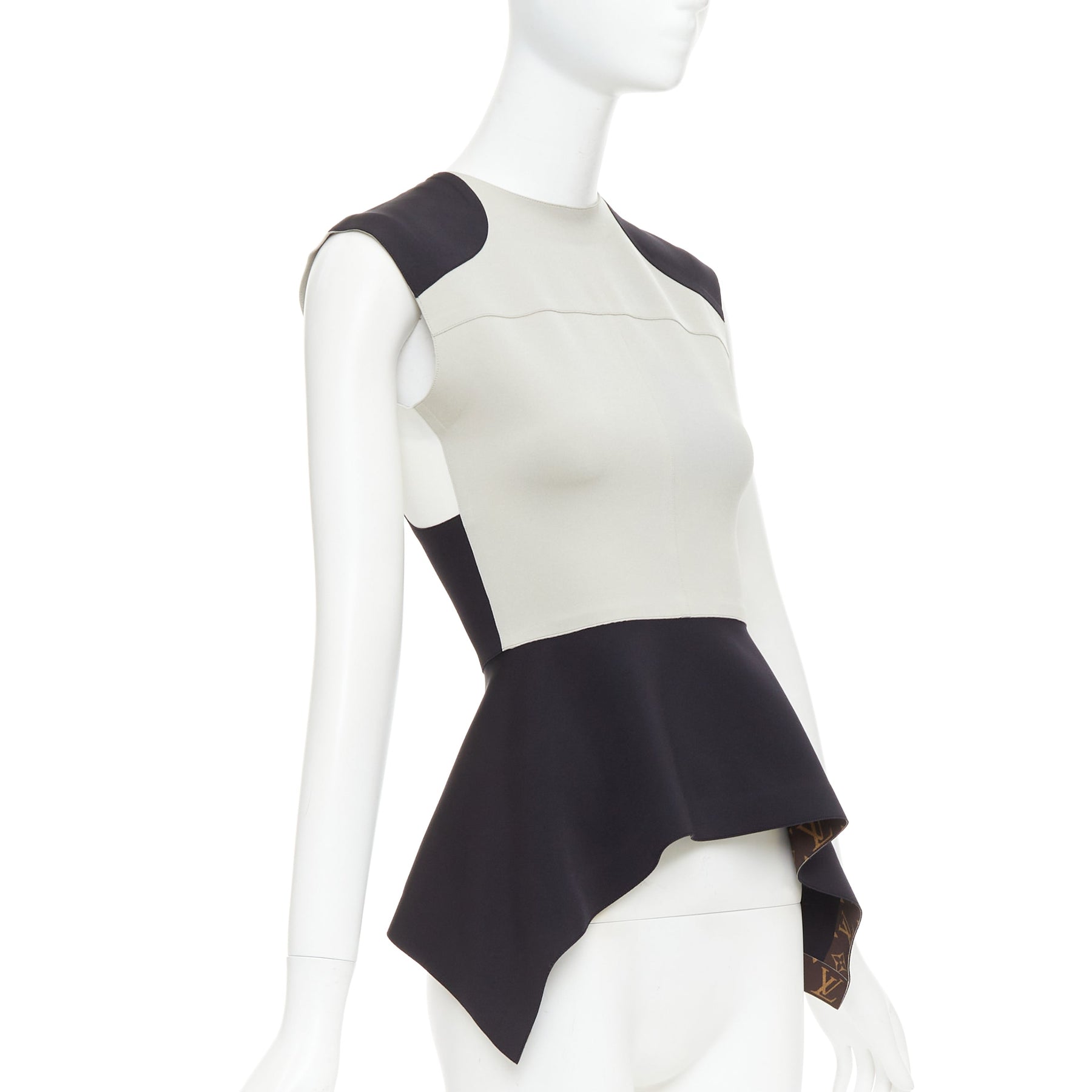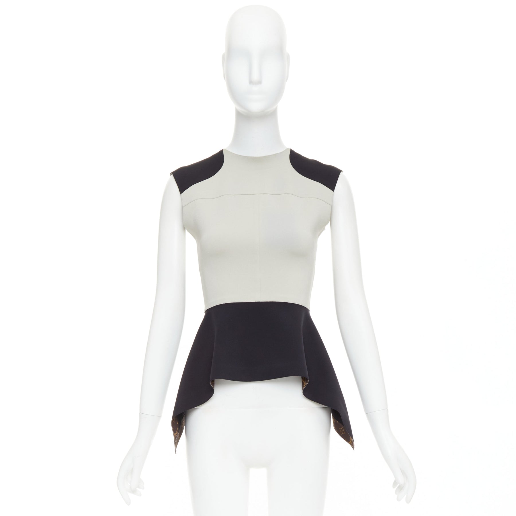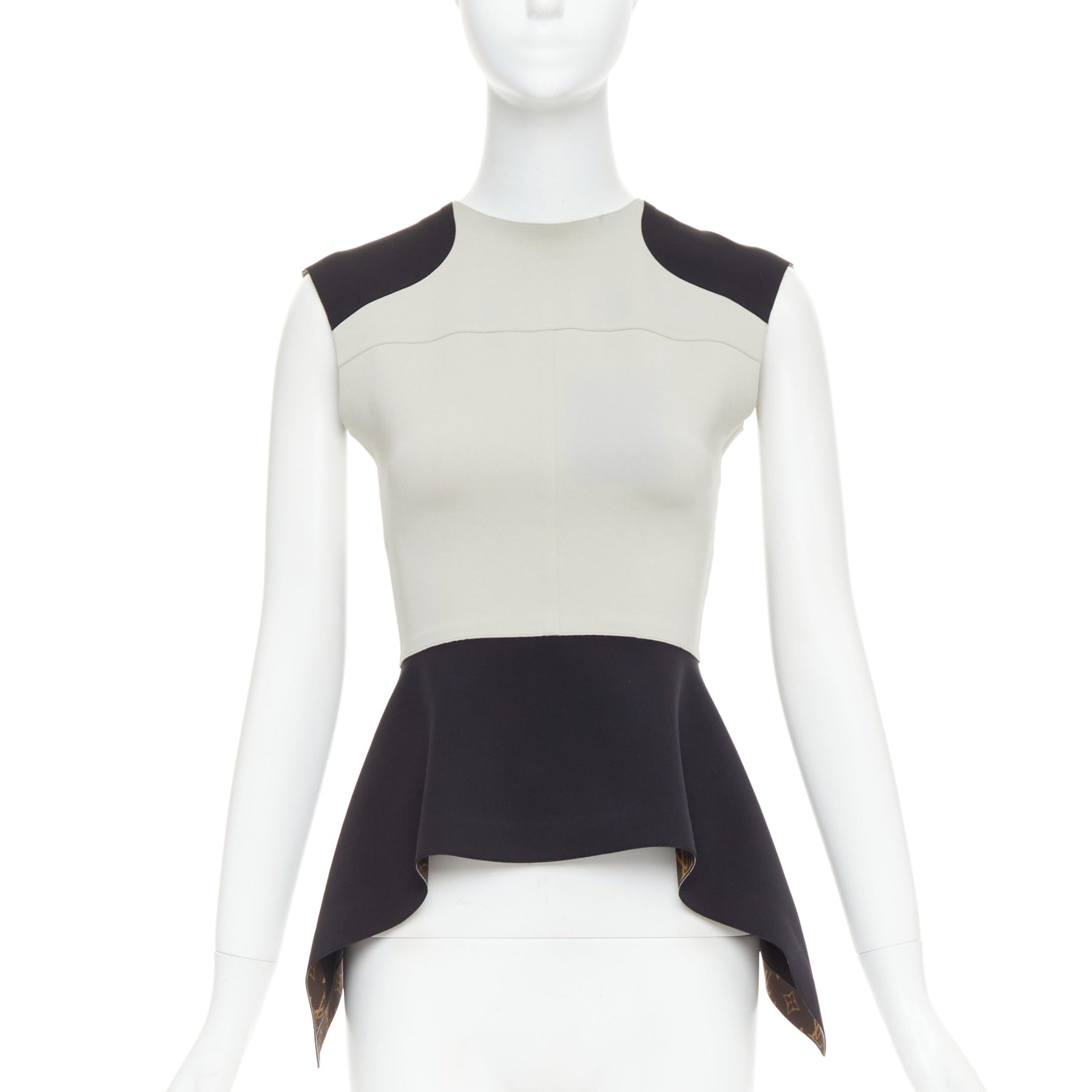 LOUIS VUITTON grey black colorblocked LV canvas peplum top FR38 M