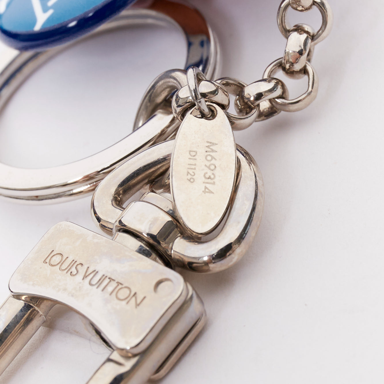 Extra Details: Louis Vuitton Escale key holder and bag charm. Features tie-dye print inspired by Japanese shibori technique. Part of the S/S 2020 collection. Made with pear wood. Accented with baby pink and blue tones.