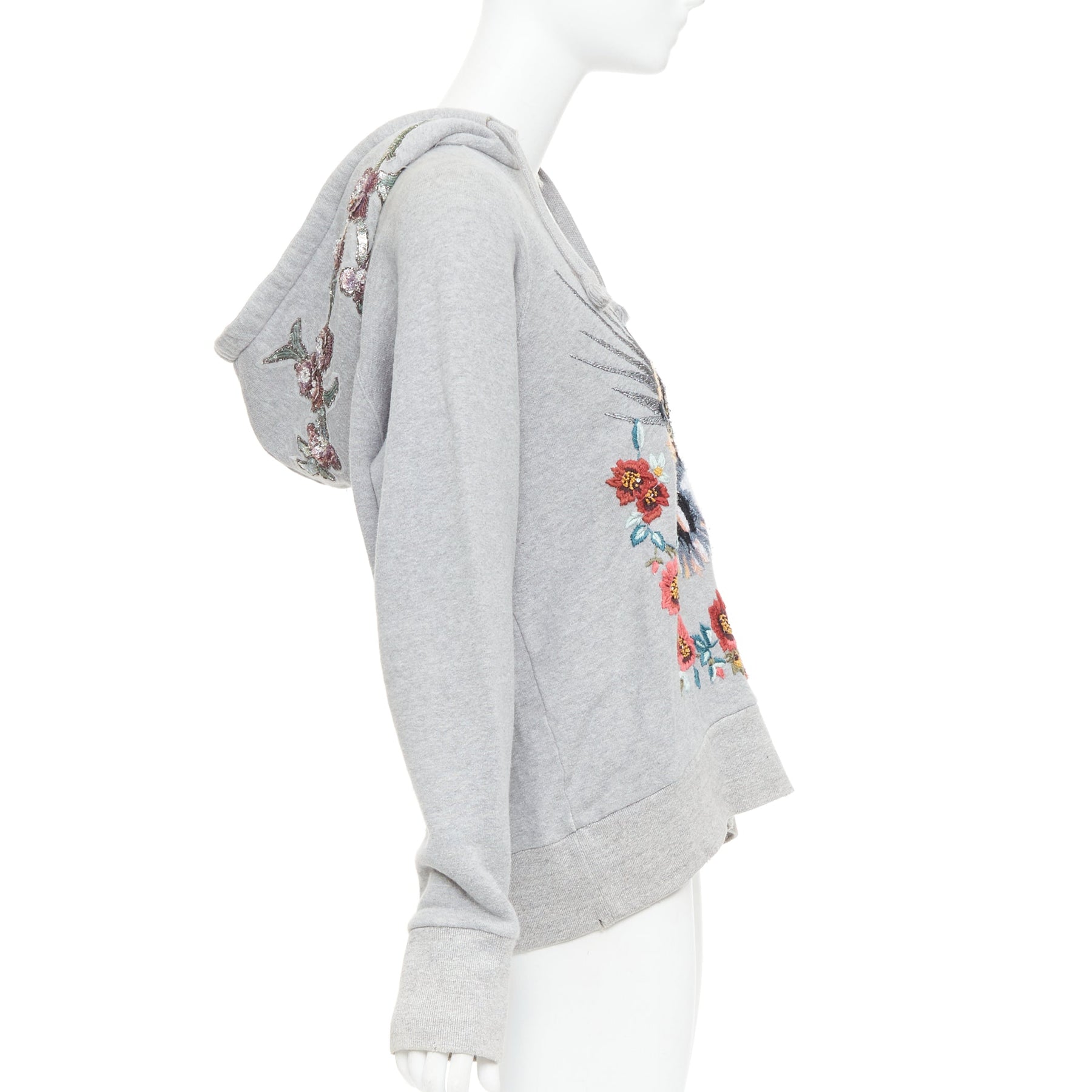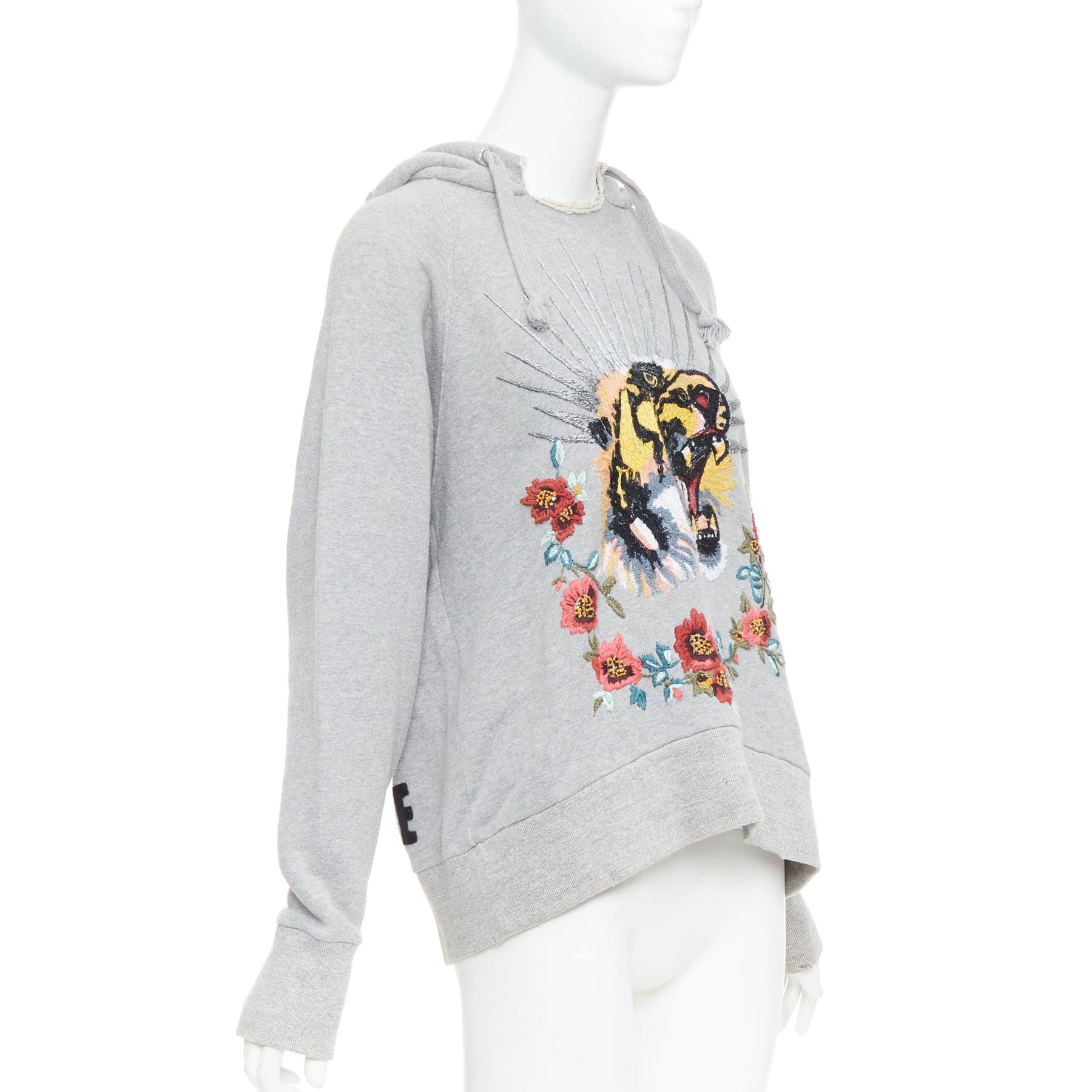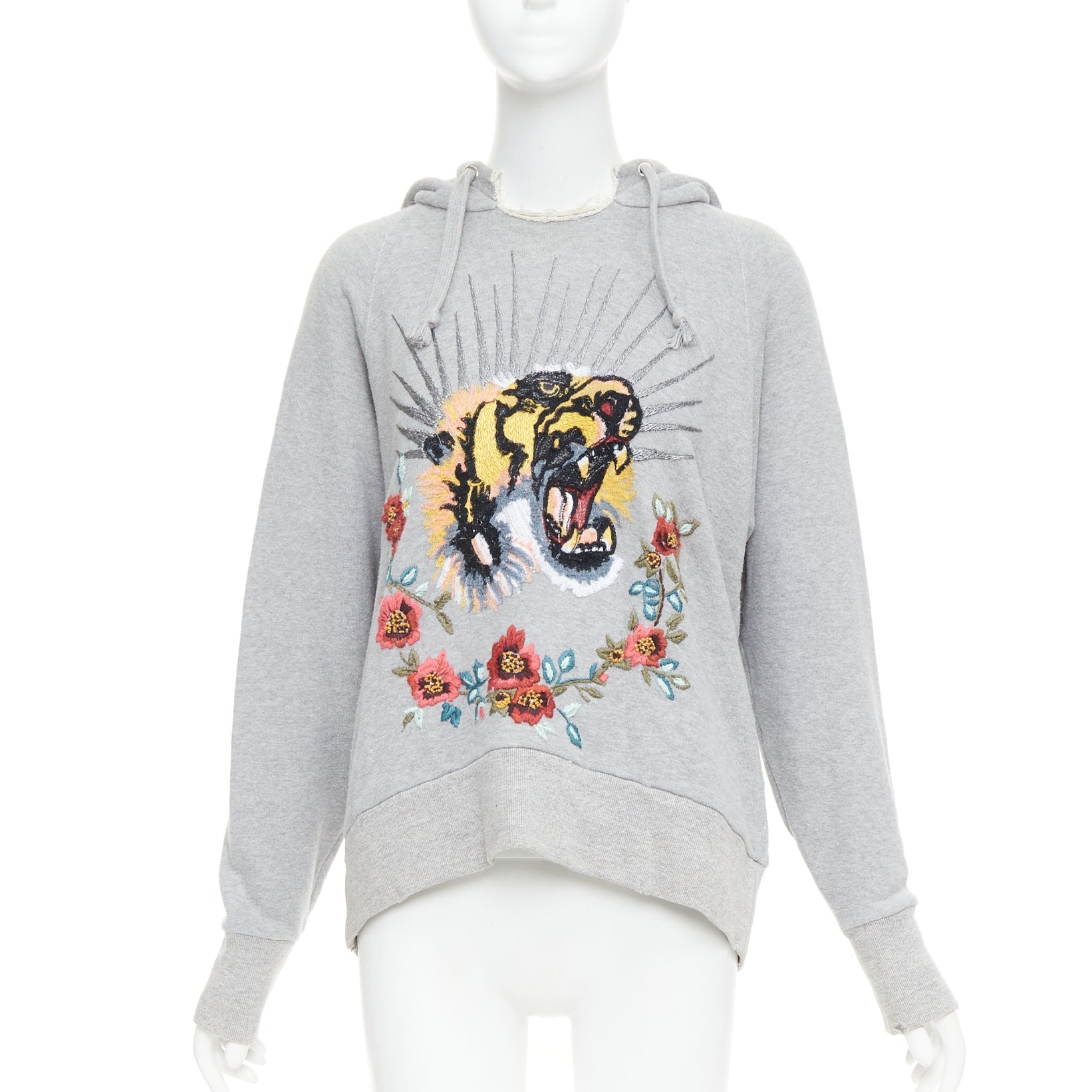 GUCCI Blind For Love grey cotton yellow tiger embroidered hoodie XS
