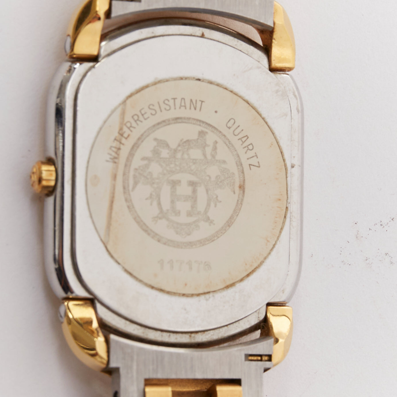 HERMES Rallye two-tone stainless steel gold plated saddle oval quartz watch