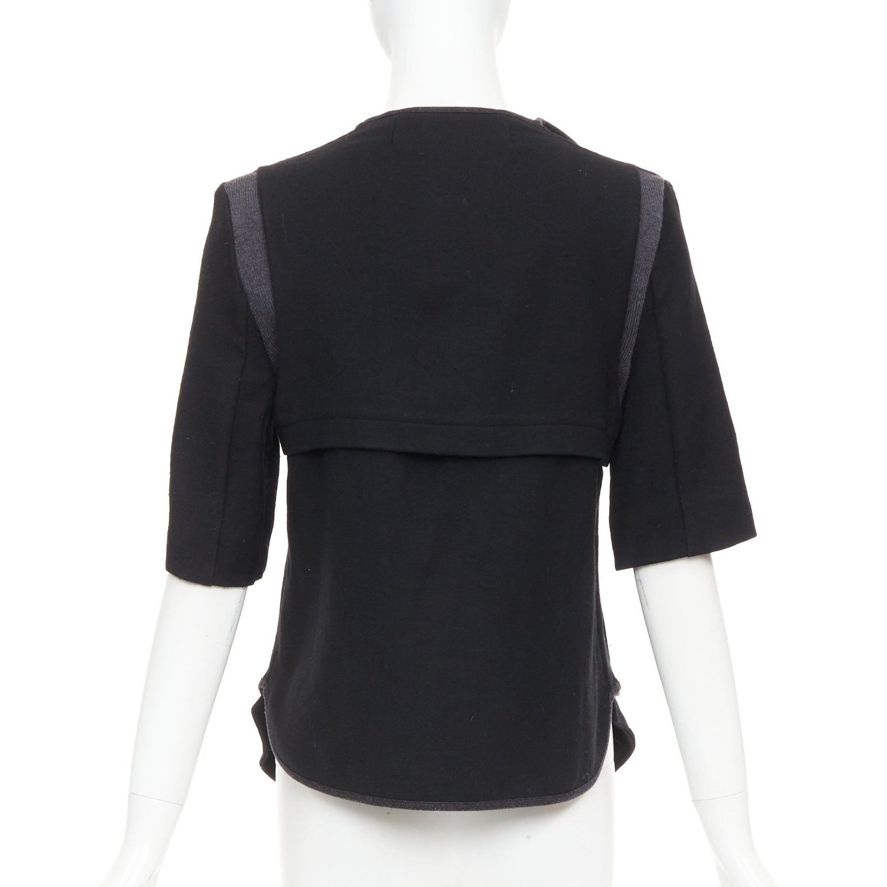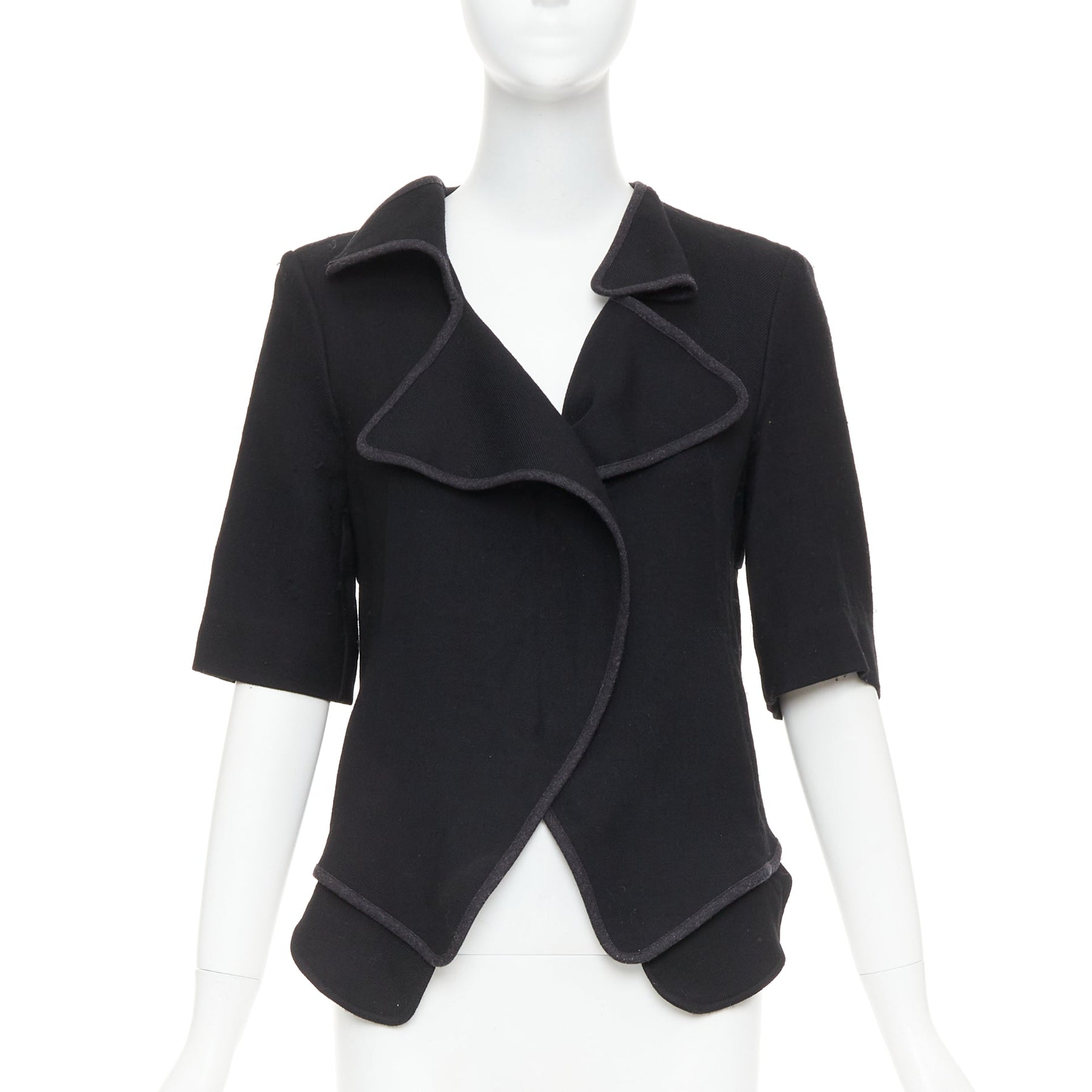 MARNI 2010 black 100% virgin wool twill trimmed collar fitted jacket IT38 XS