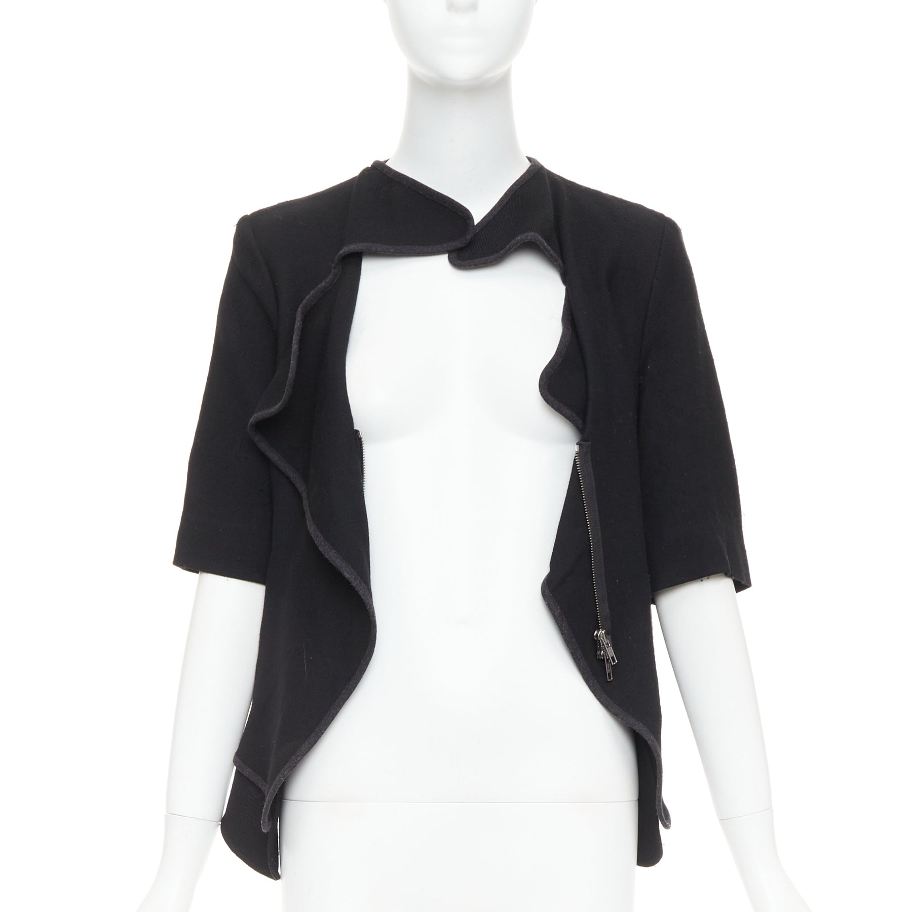 Extra Details: Asymmetric zip detail.