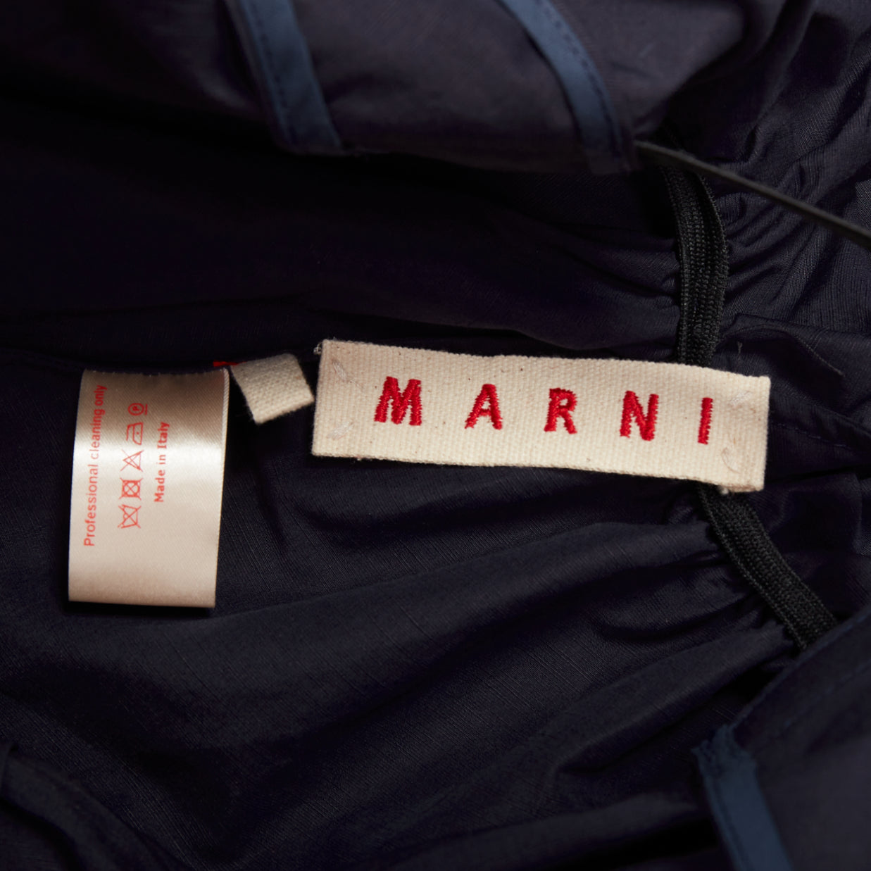 MARNI navy cotton linen blend dipped cowl neck back shift dress IT38 XS