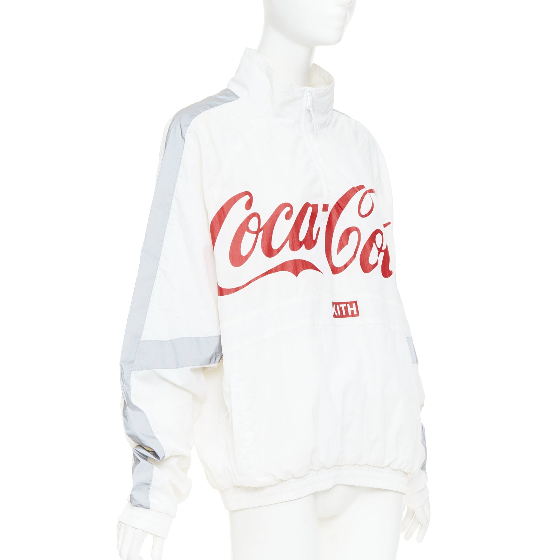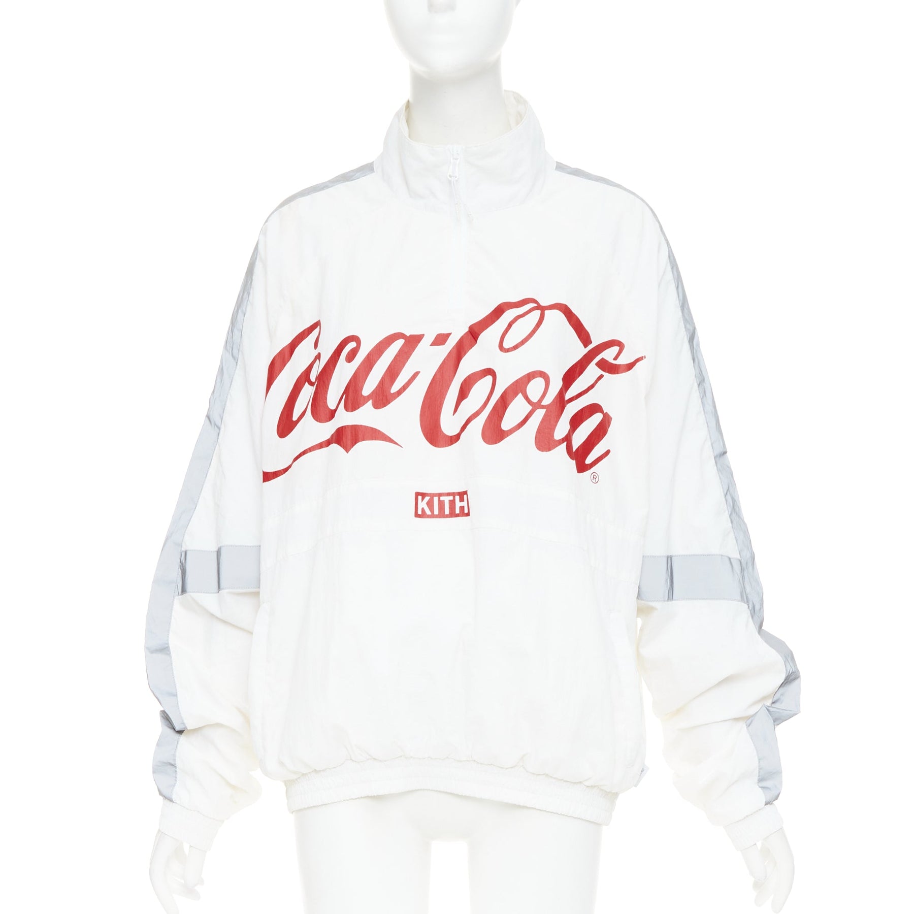 KITH COCA COLA 2019 cream grey reflective accents nylon red logo quarter zip track sweatshirt S