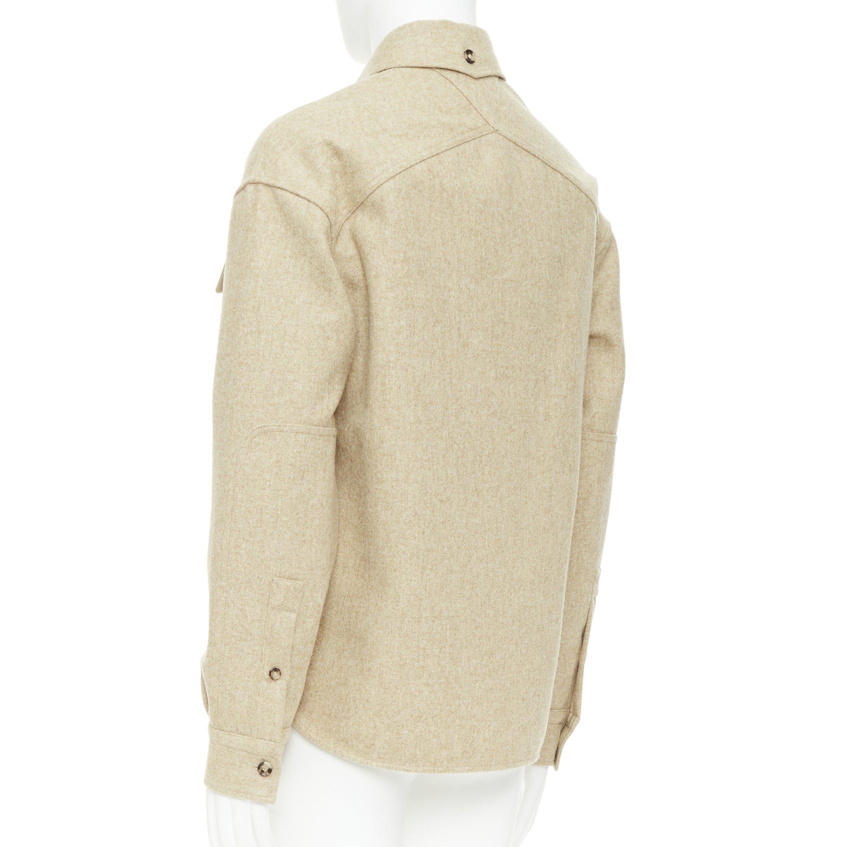 BOTTEGA VENETA 2020 beige double faced wool felt angular pocket overshirt EU38 S