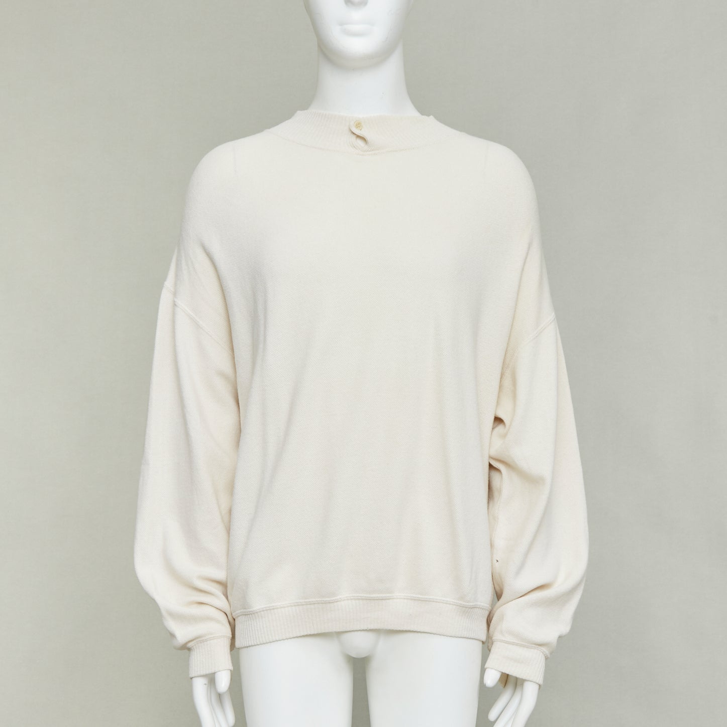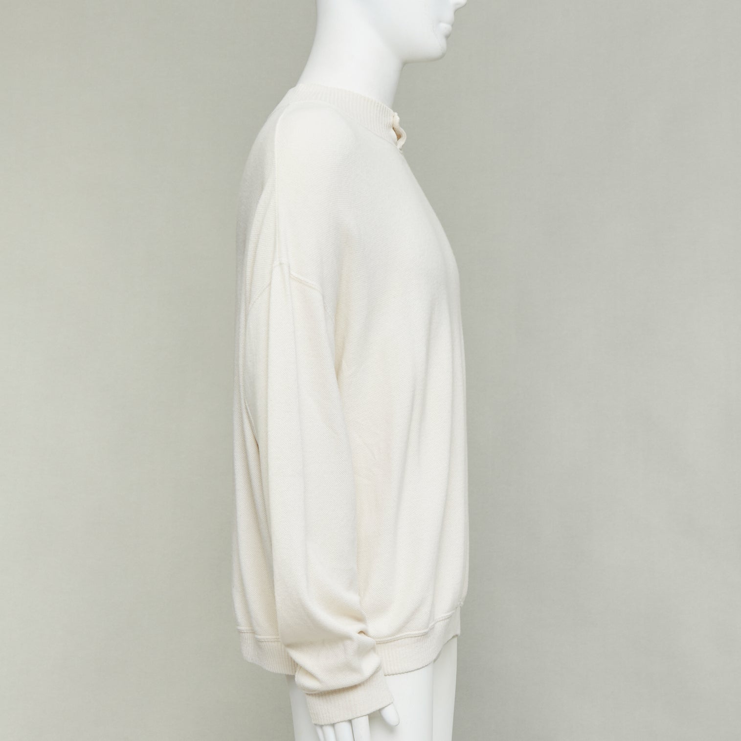 GIORGIO ARMANI cream wool blend button neck long sleeve sweater