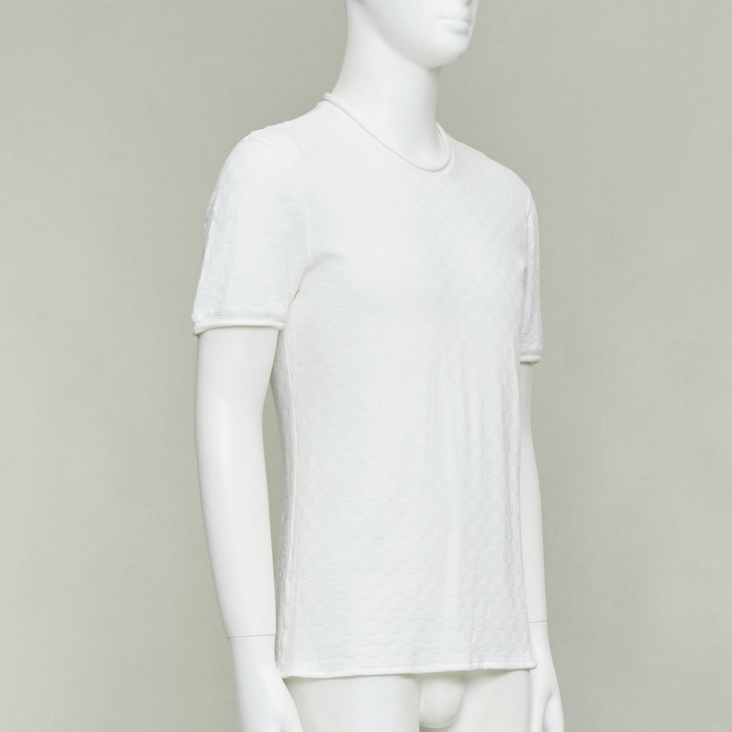 GIORGIO ARMANI white rolled hem checkered knit pullover top IT52 XL
