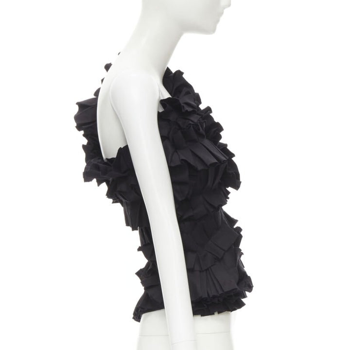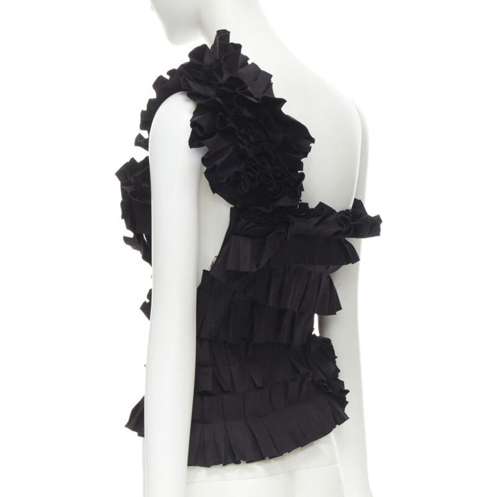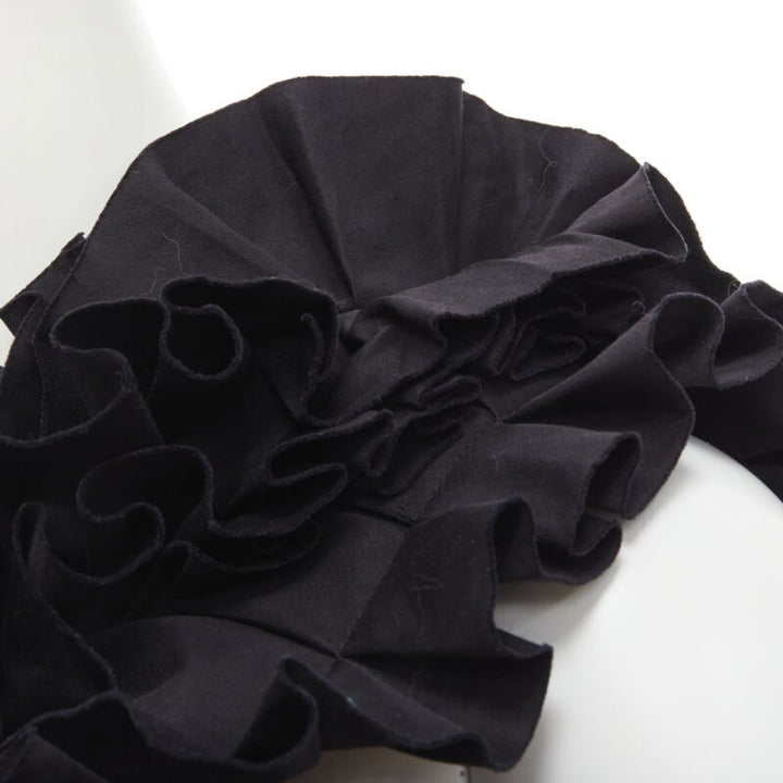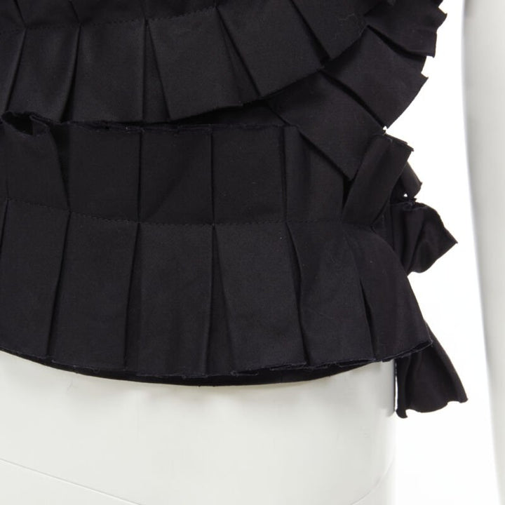 BOTTEGA VENETA black pleated ruffle one shoulder corset bustier top IT38 XS