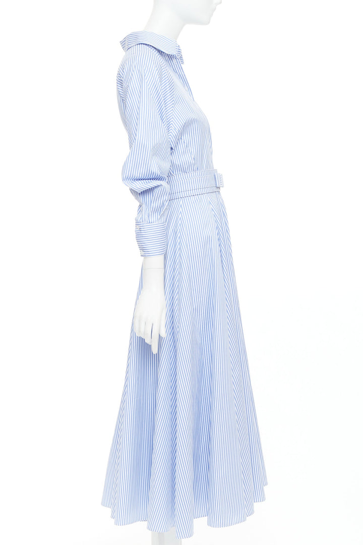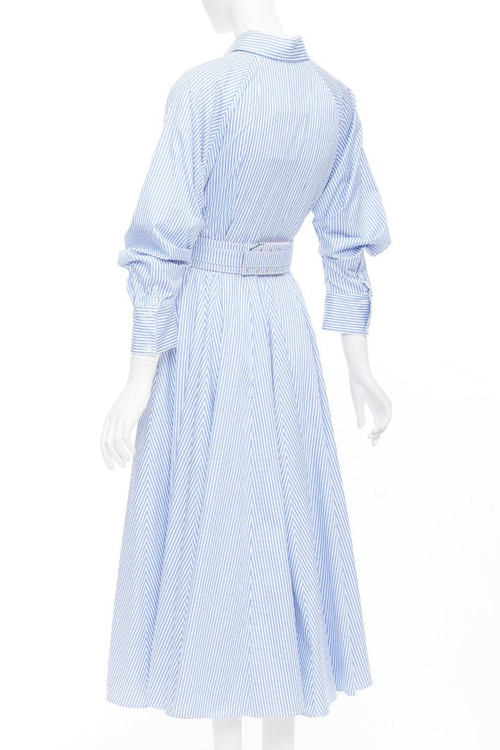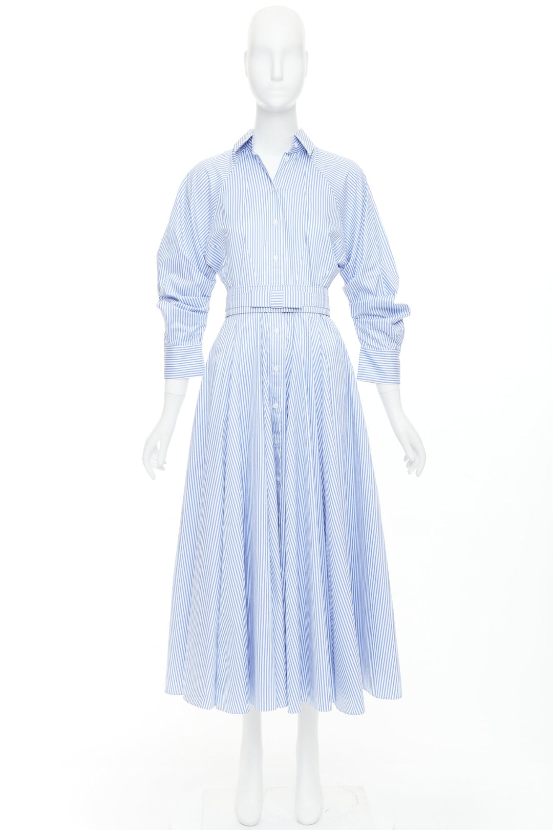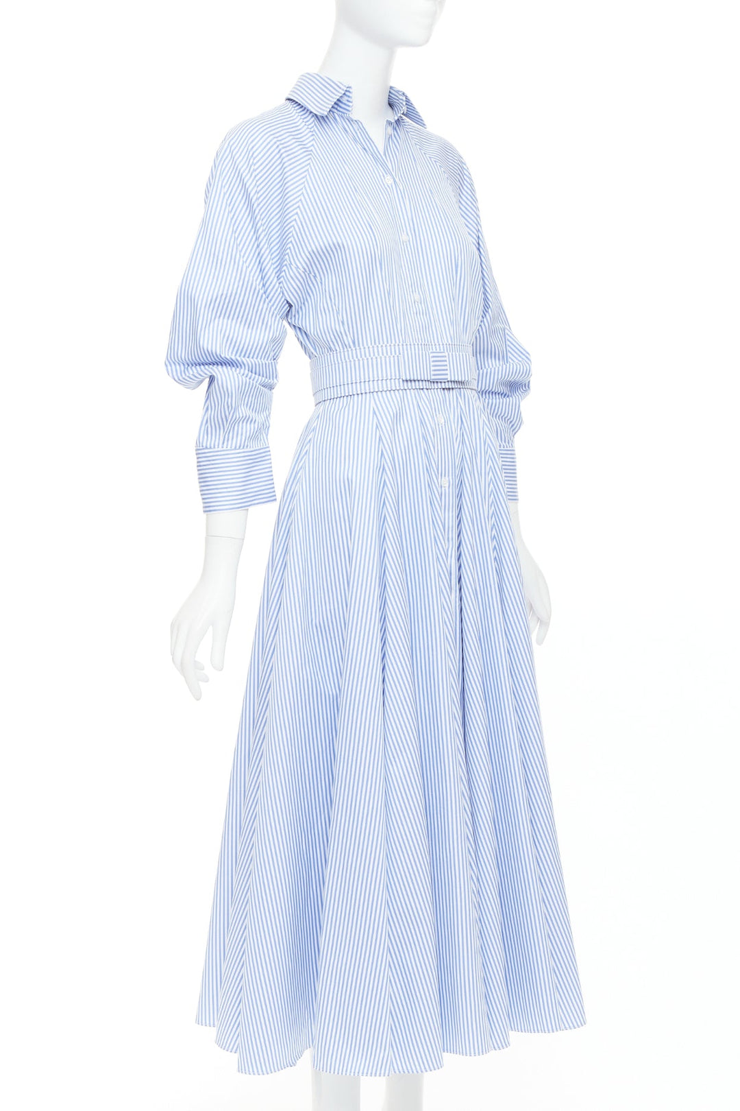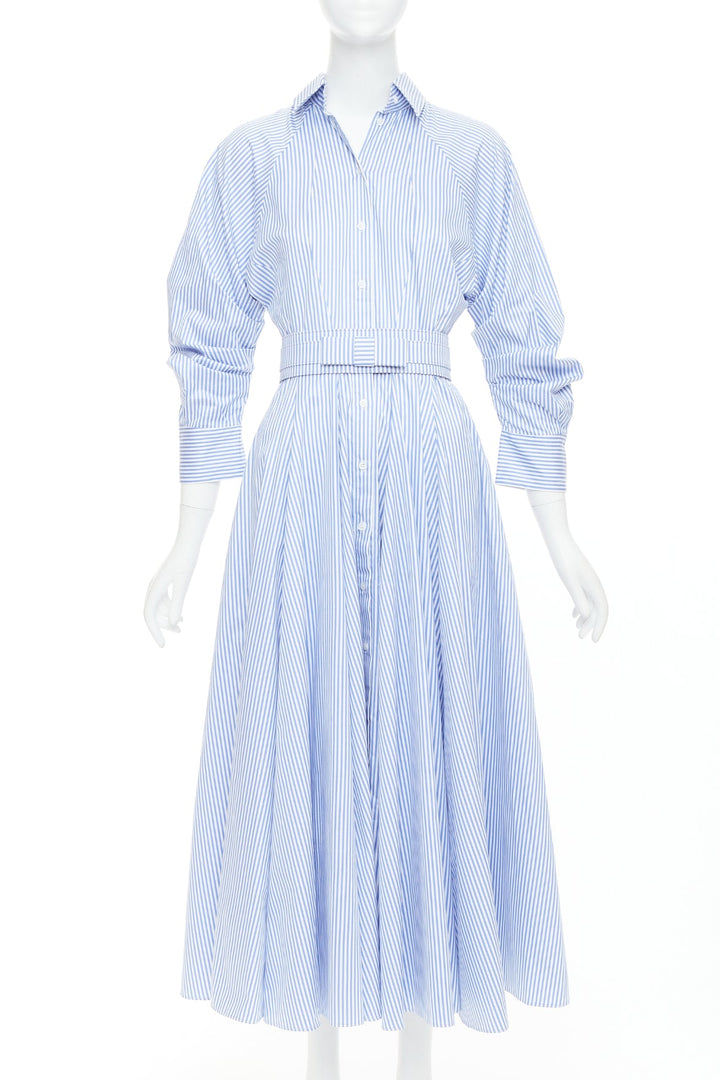 BRANDON MAXWELL blue white striped cotton twill belted midi shirt dress US0 XS
