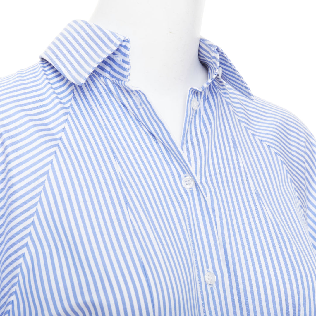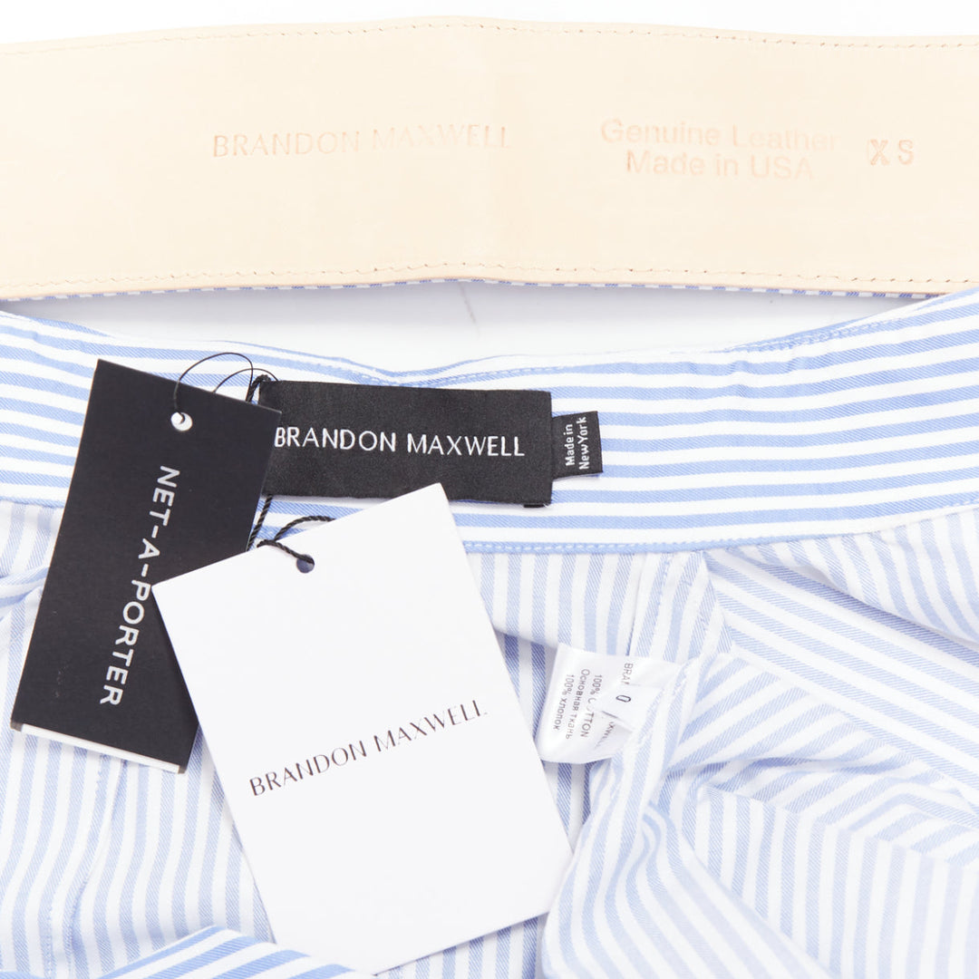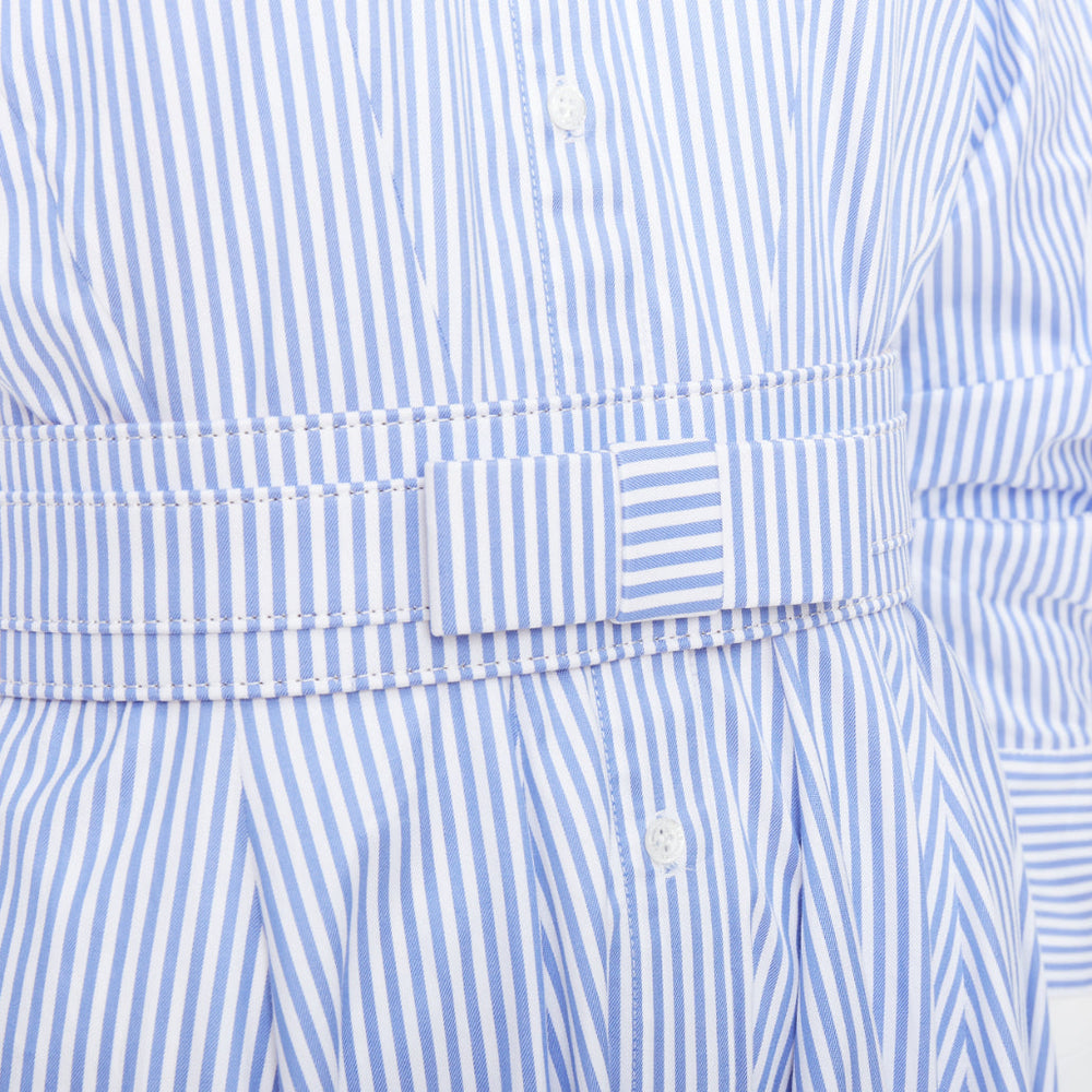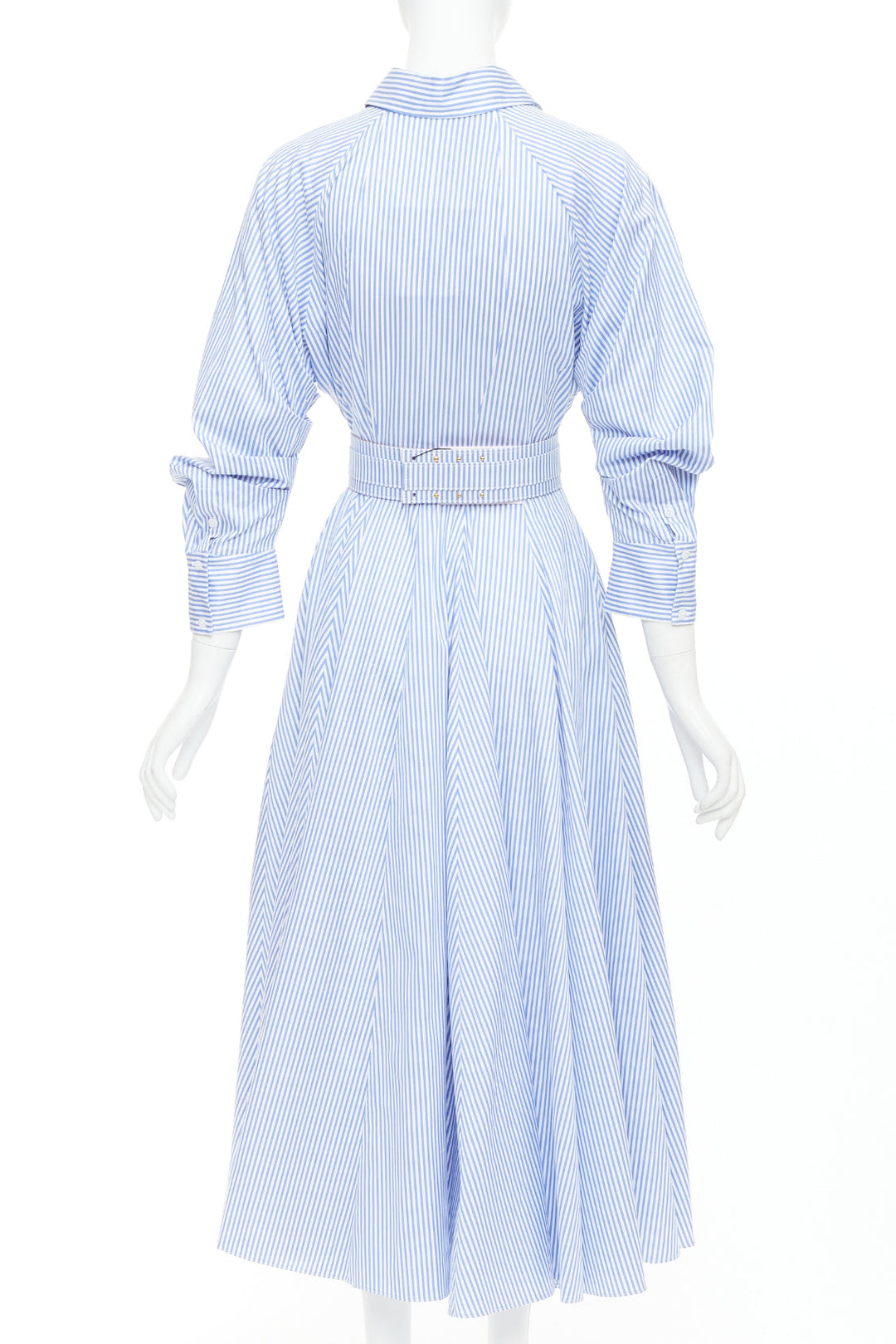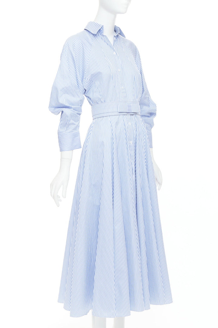 BRANDON MAXWELL blue white striped cotton twill belted midi shirt dress US0 XS