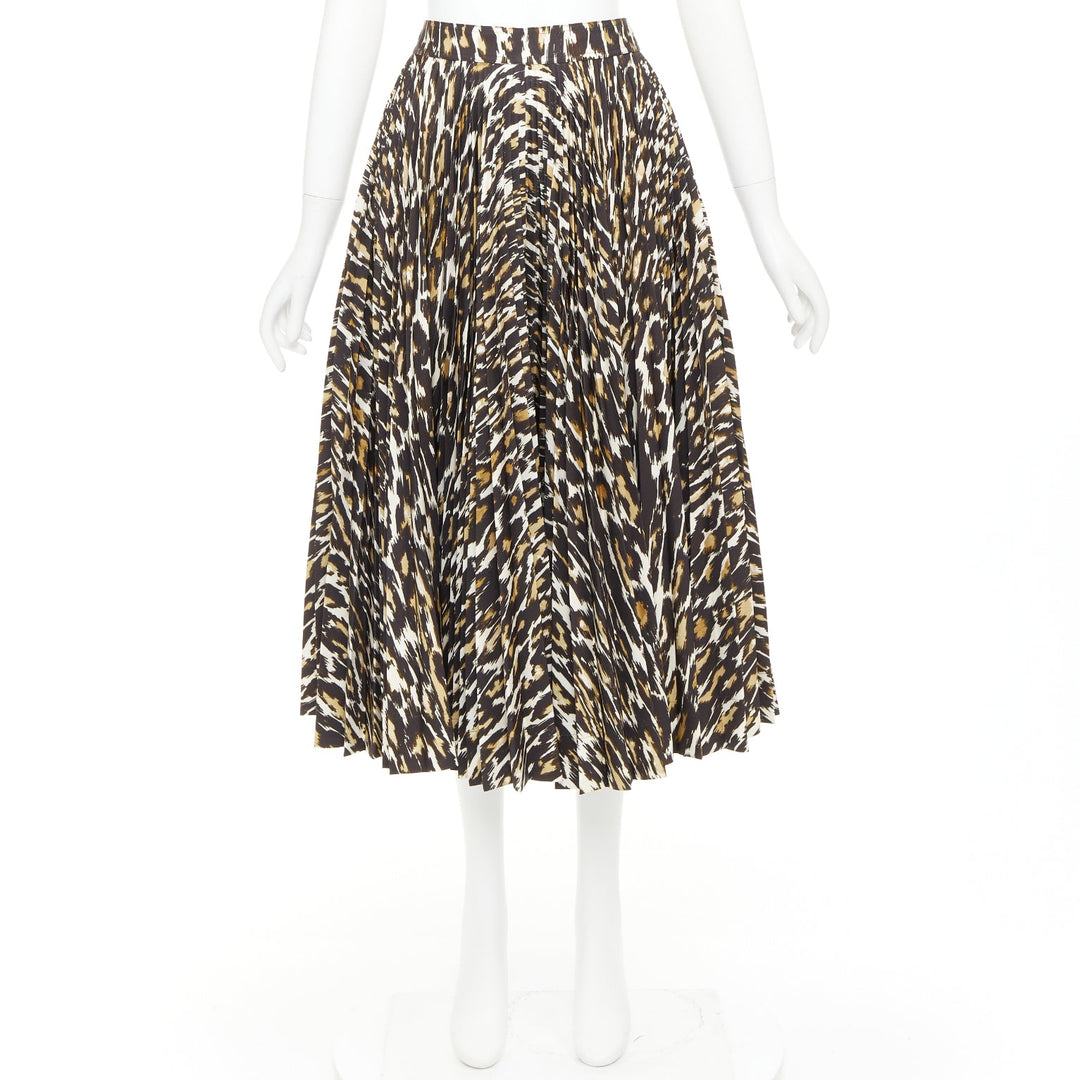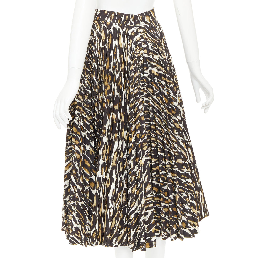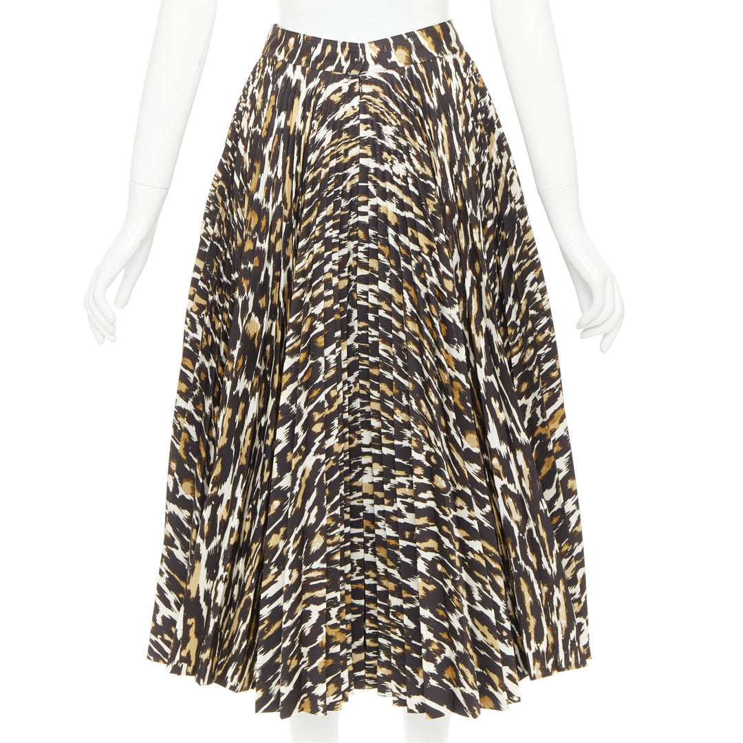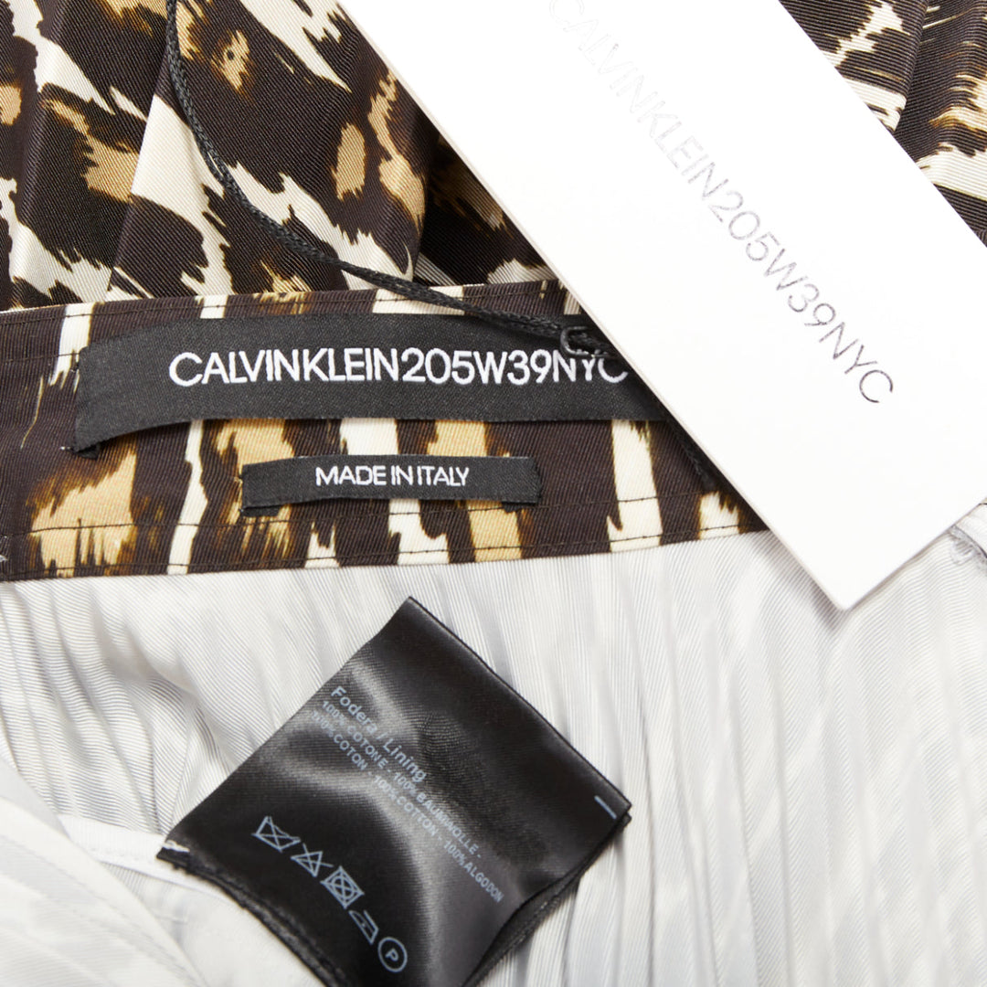 CALVIN KLEIN 205W39NYC Raf Simons brown leopard print pleated skirt US0 XS
