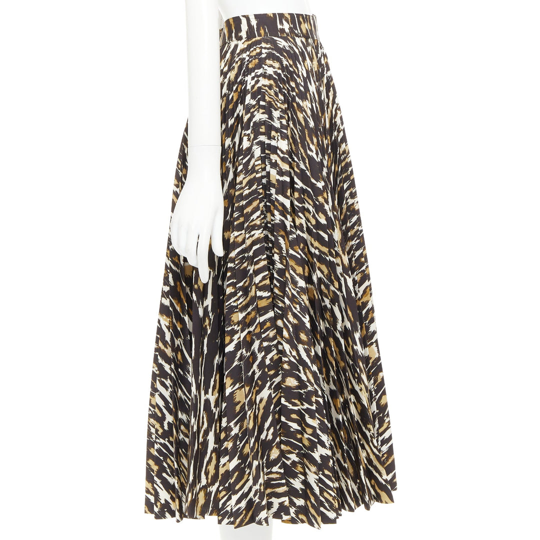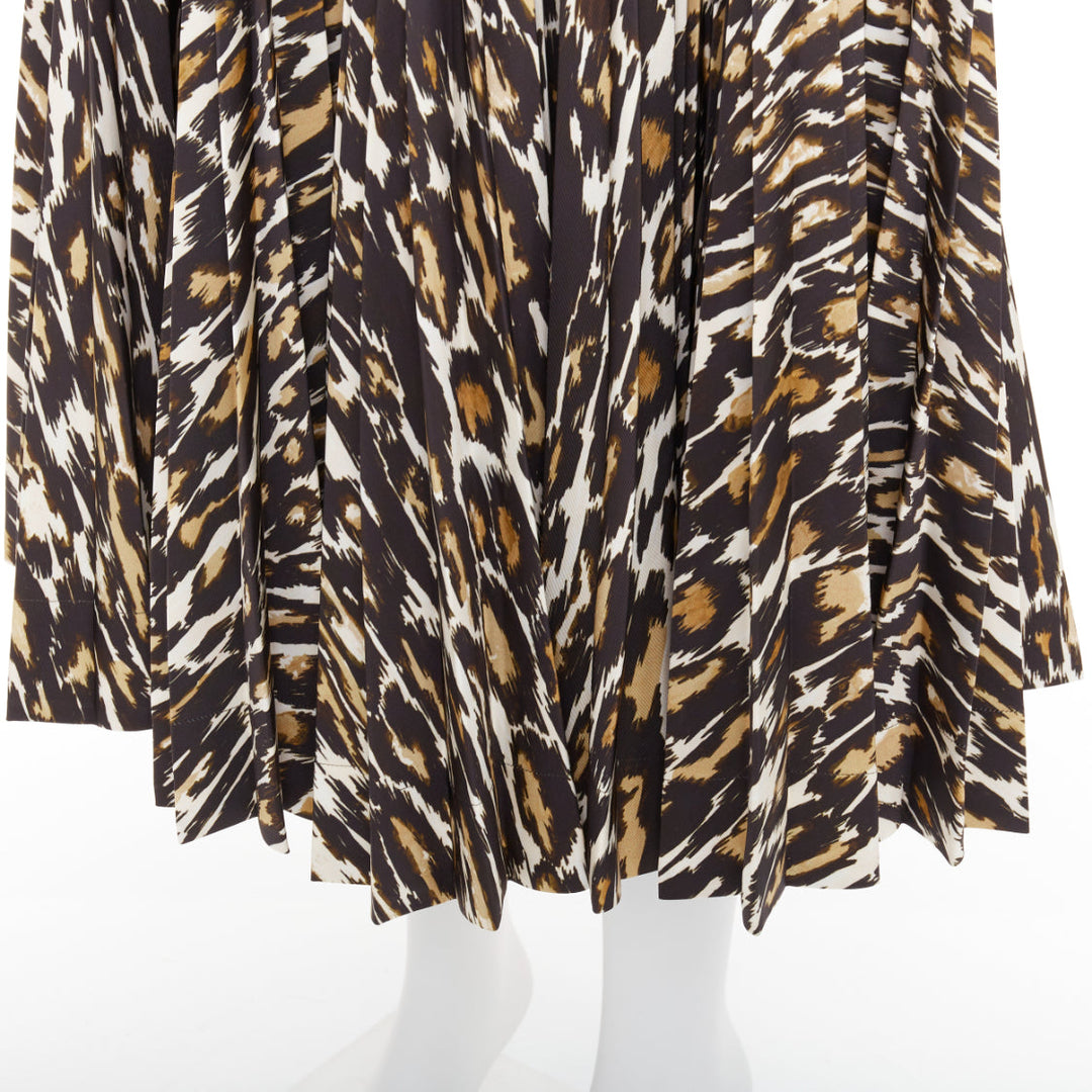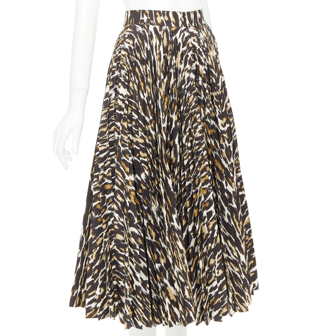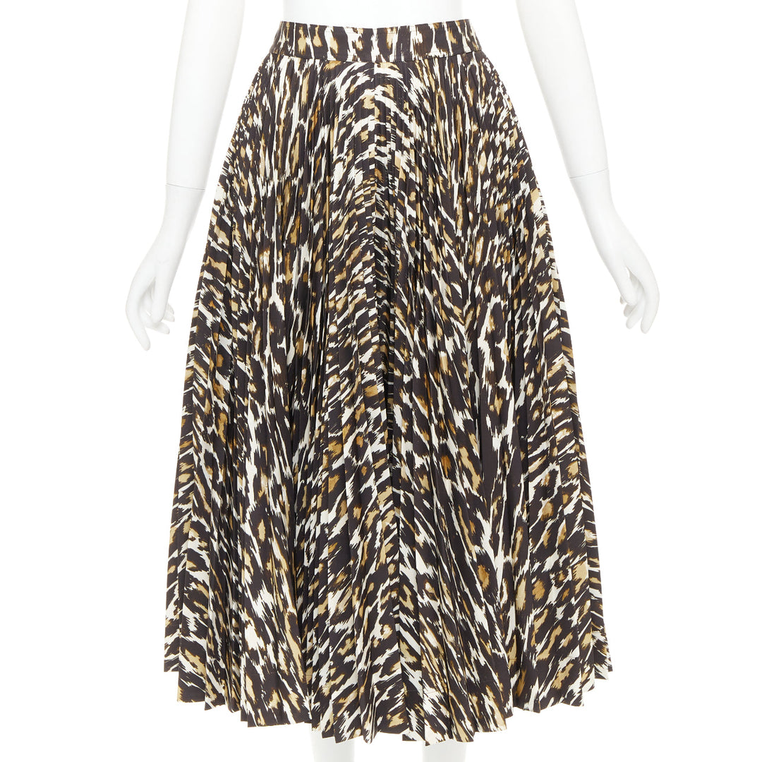 CALVIN KLEIN 205W39NYC Raf Simons brown leopard print pleated skirt US0 XS