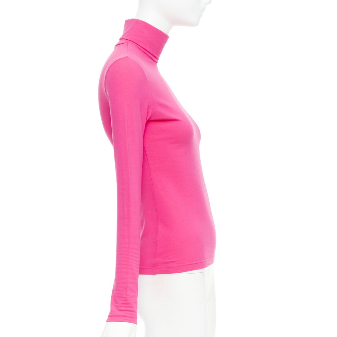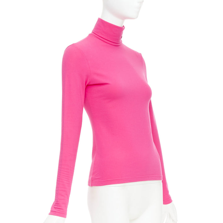 Extra Details: Long sleeve stretch cotton jersey sweater in begonia pink. Turtleneck collar. Tonal stitching.
