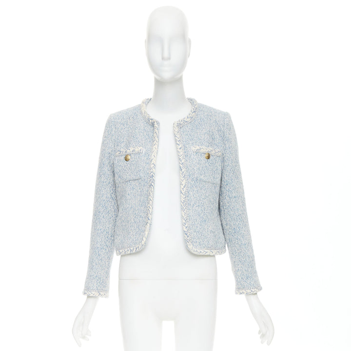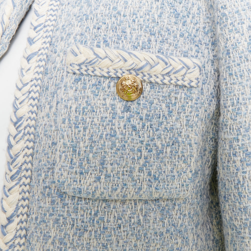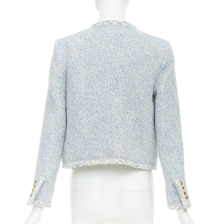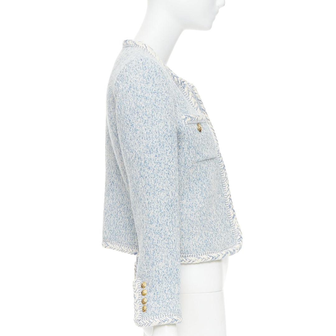CELINE 2023 baby blue white wool cotton boucle tweed trim jacket FR36 S