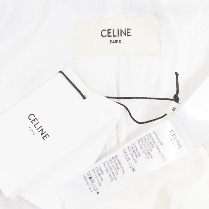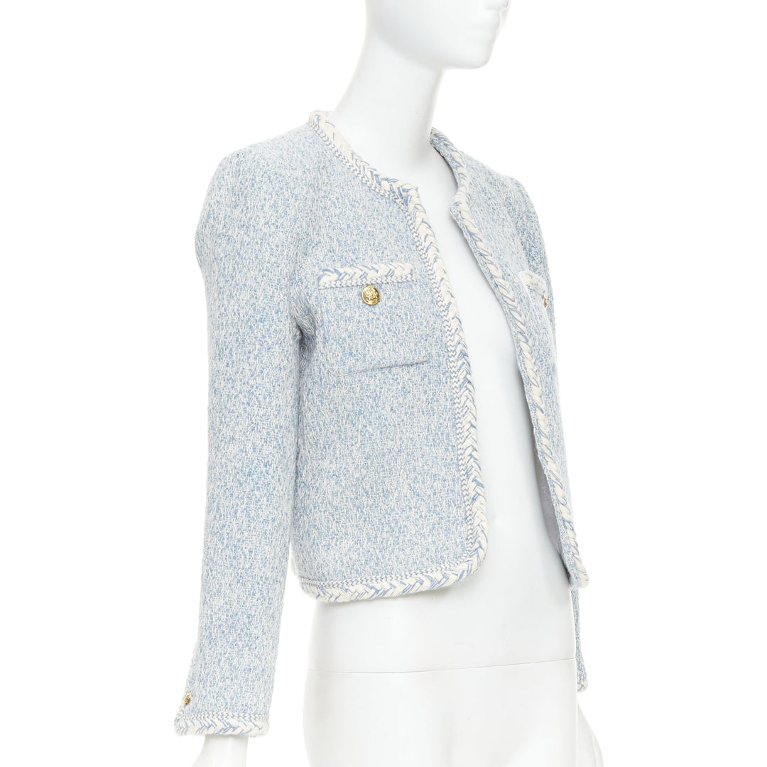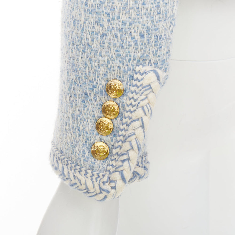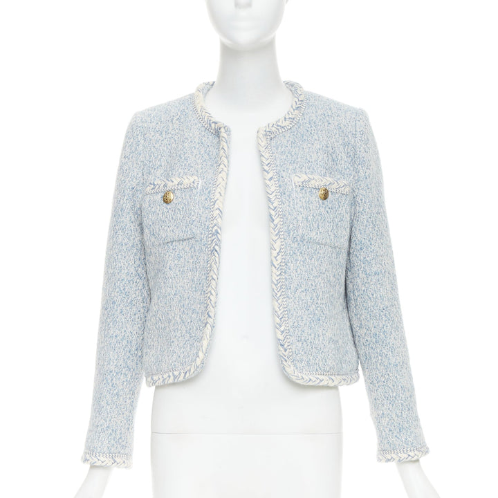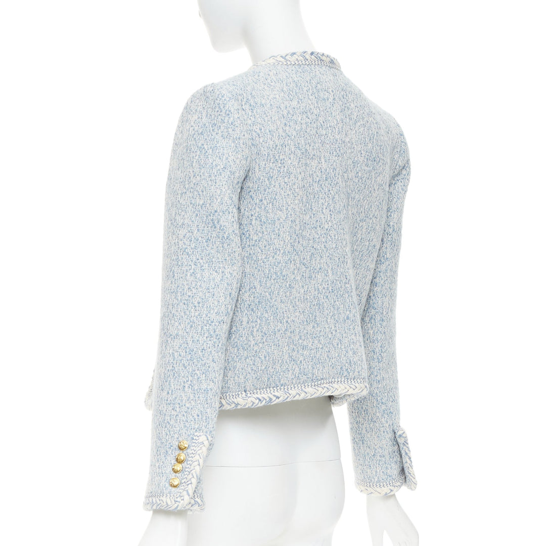 CELINE 2023 baby blue white wool cotton boucle tweed trim jacket FR36 S