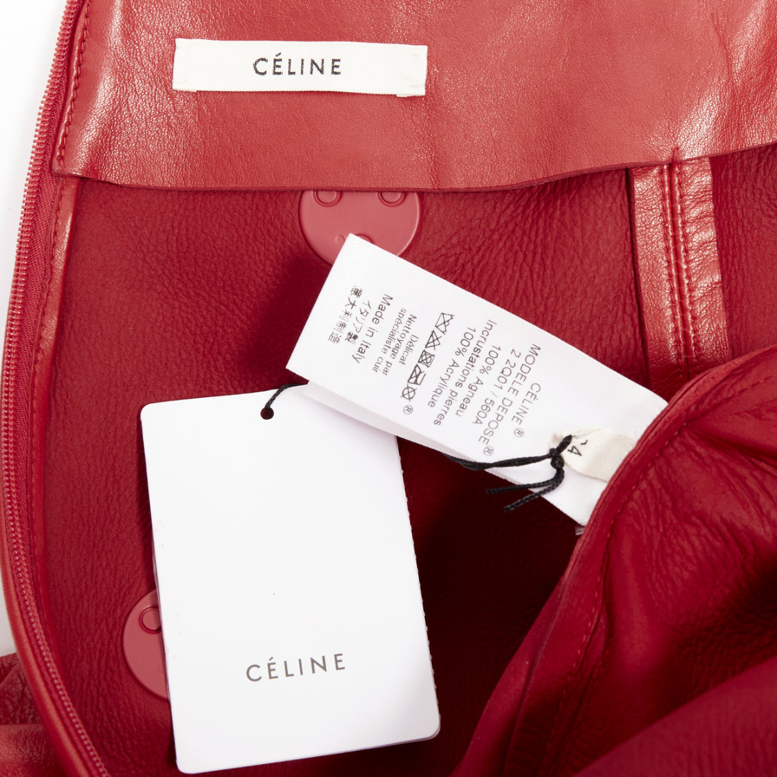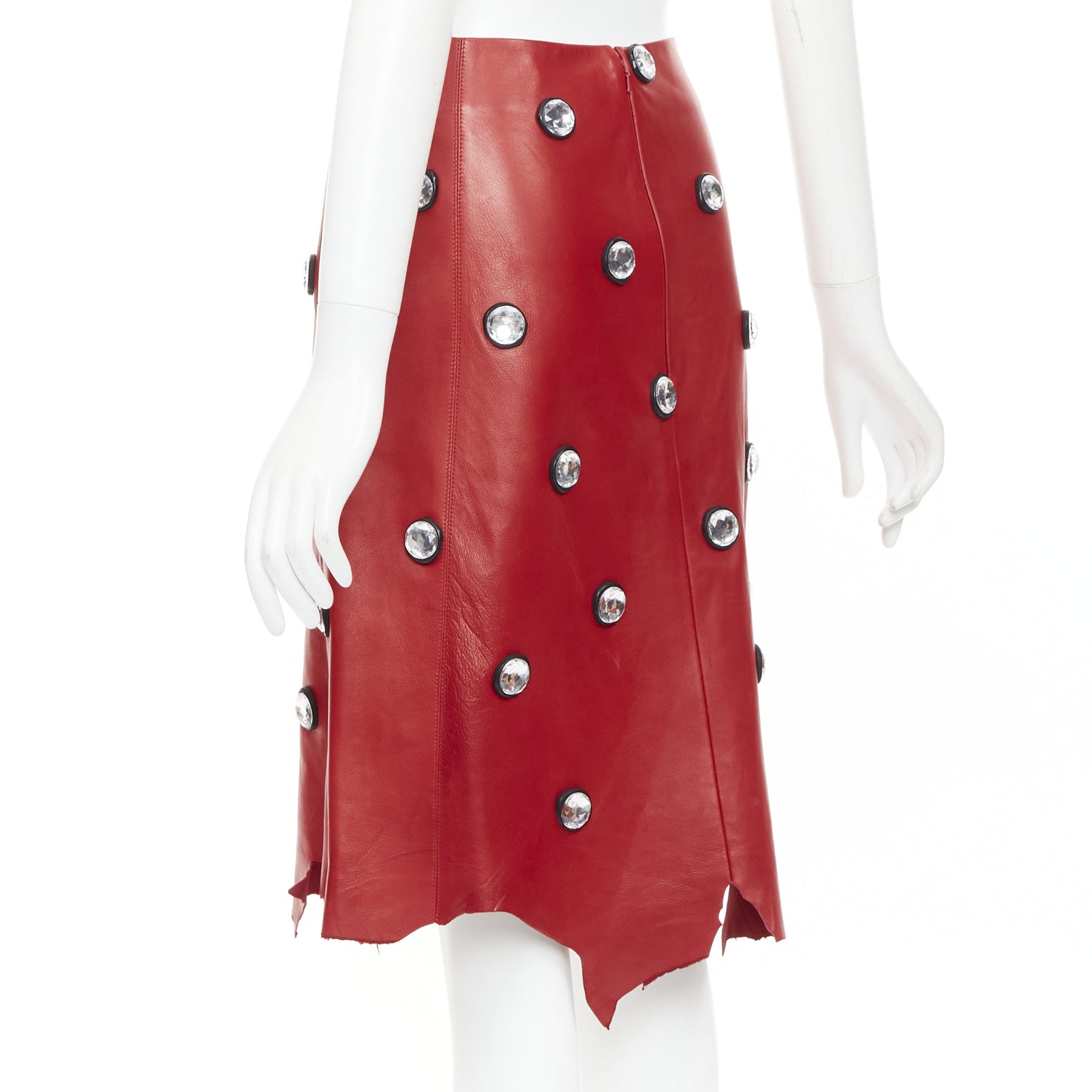 CELINE Phoebe Philo red lambskin leather acrylic stud jagged cut skirt FR34 XS