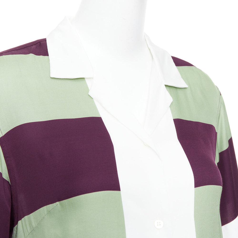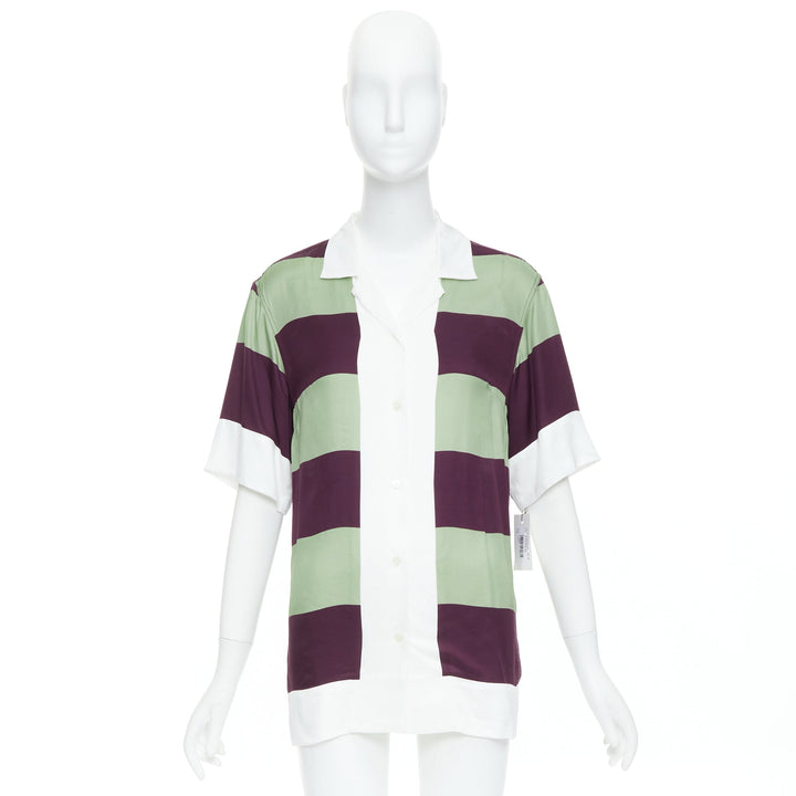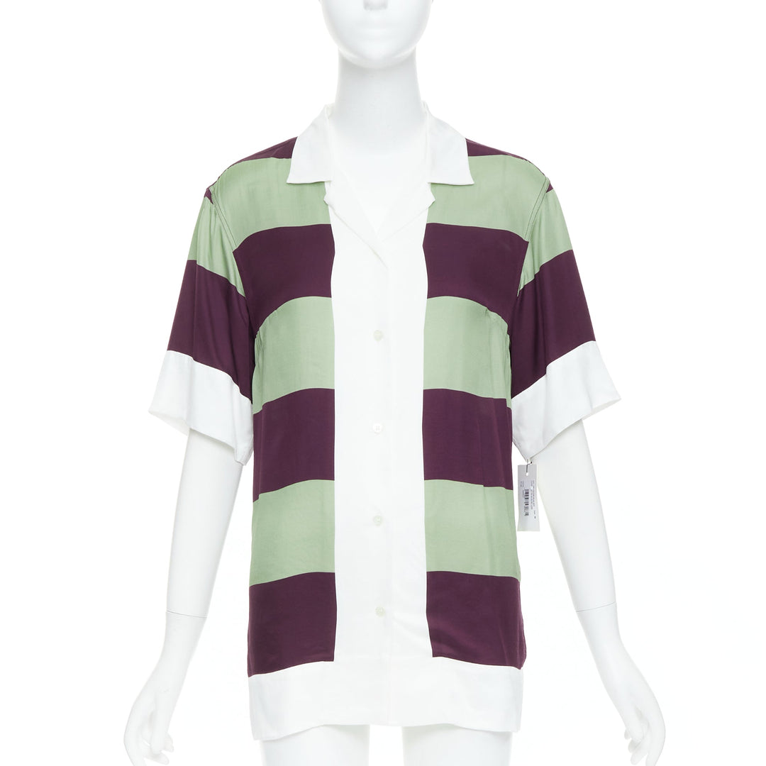 DRIES VAN NOTEN Clive 8142 green purple striped bowling shirt FR34 XS