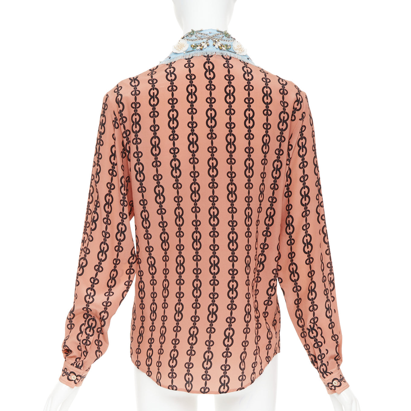 GUCCI Alessandro Michele 2017 pink silk GG chain blue embroidered collar blouse IT38 XS