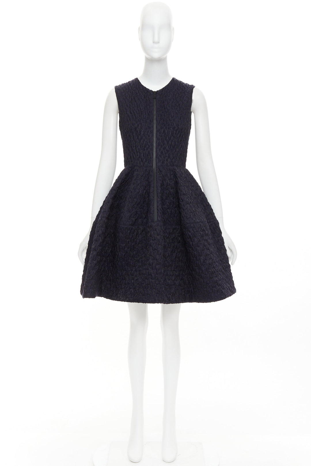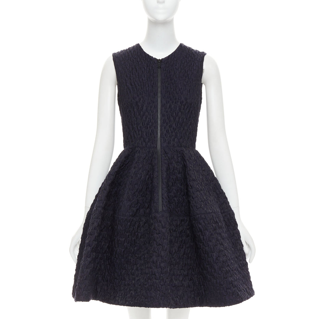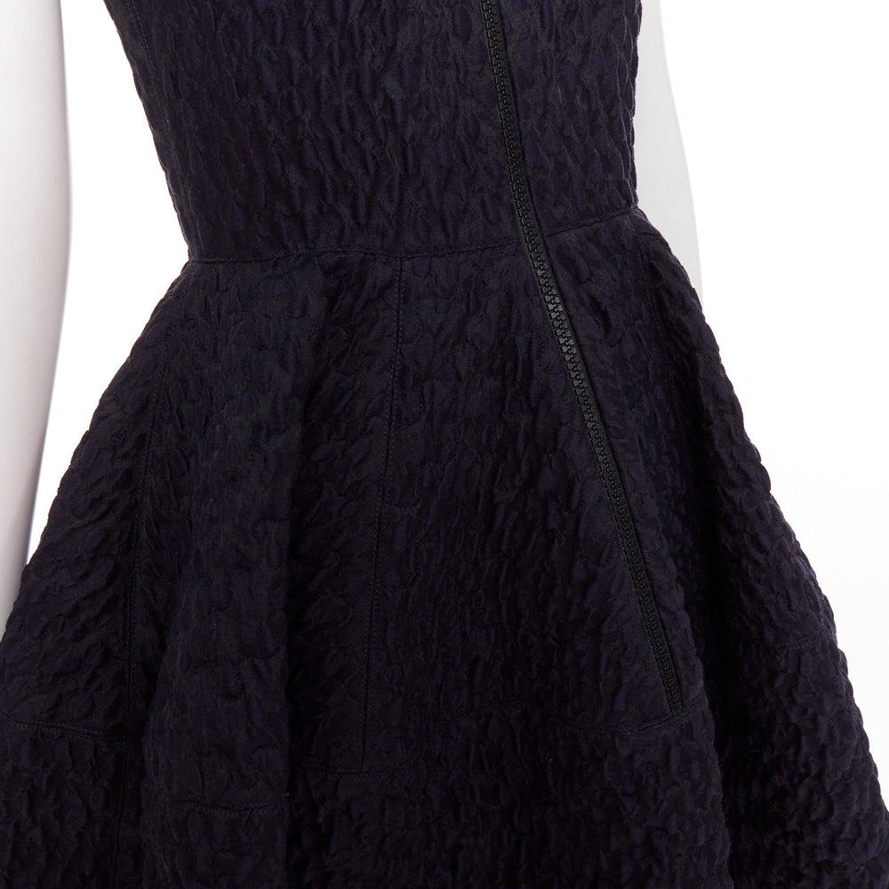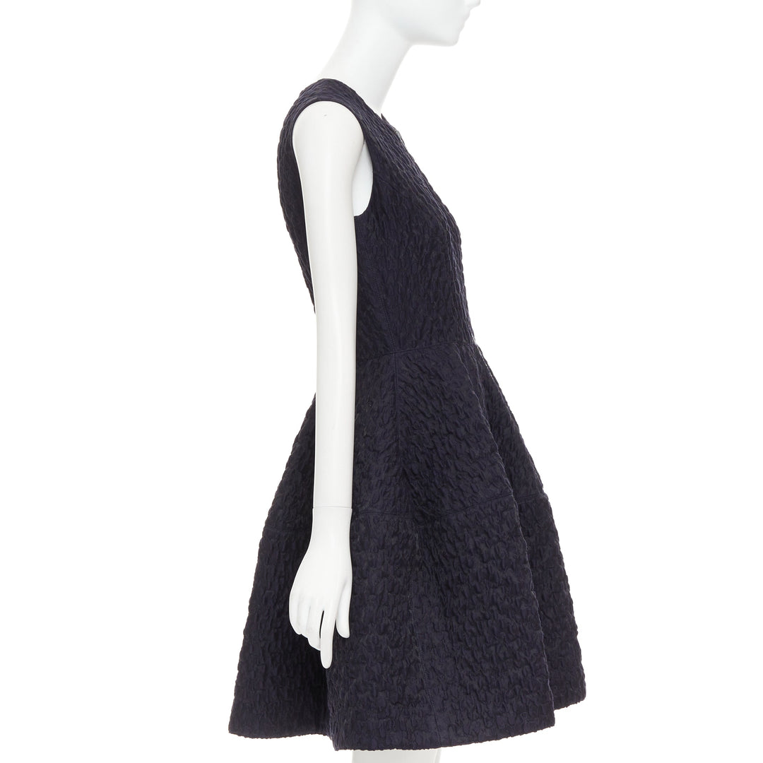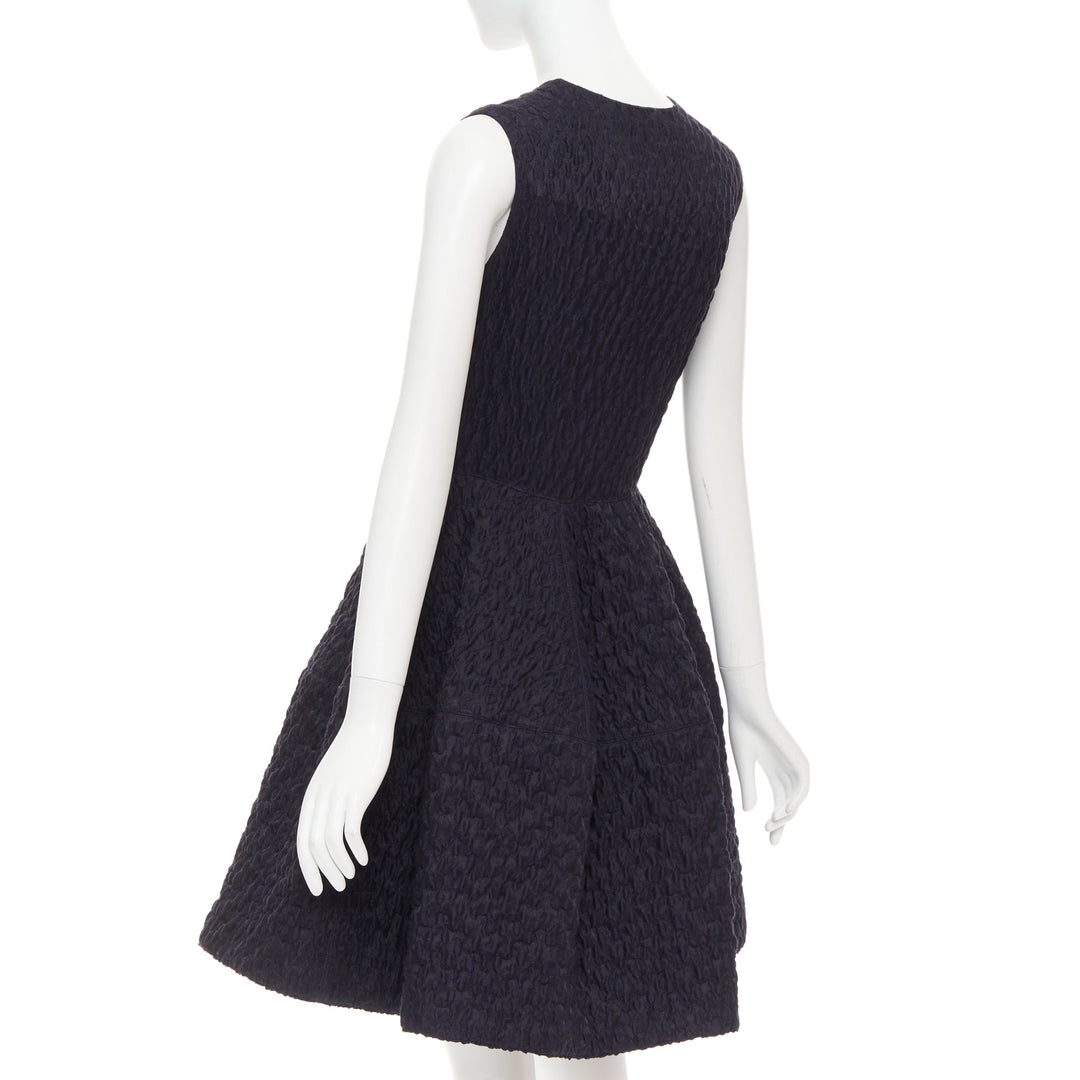 JOURDEN ANAIS navy blue black wool blend cloque fit flare cocktail dress FR38 M