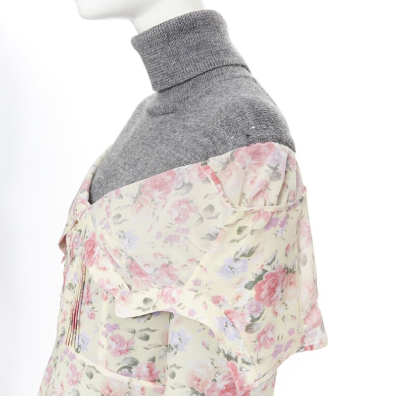 JUNYA WATANABE CDG AW18 Runway grey wool turtleneck yellow floral dress XS