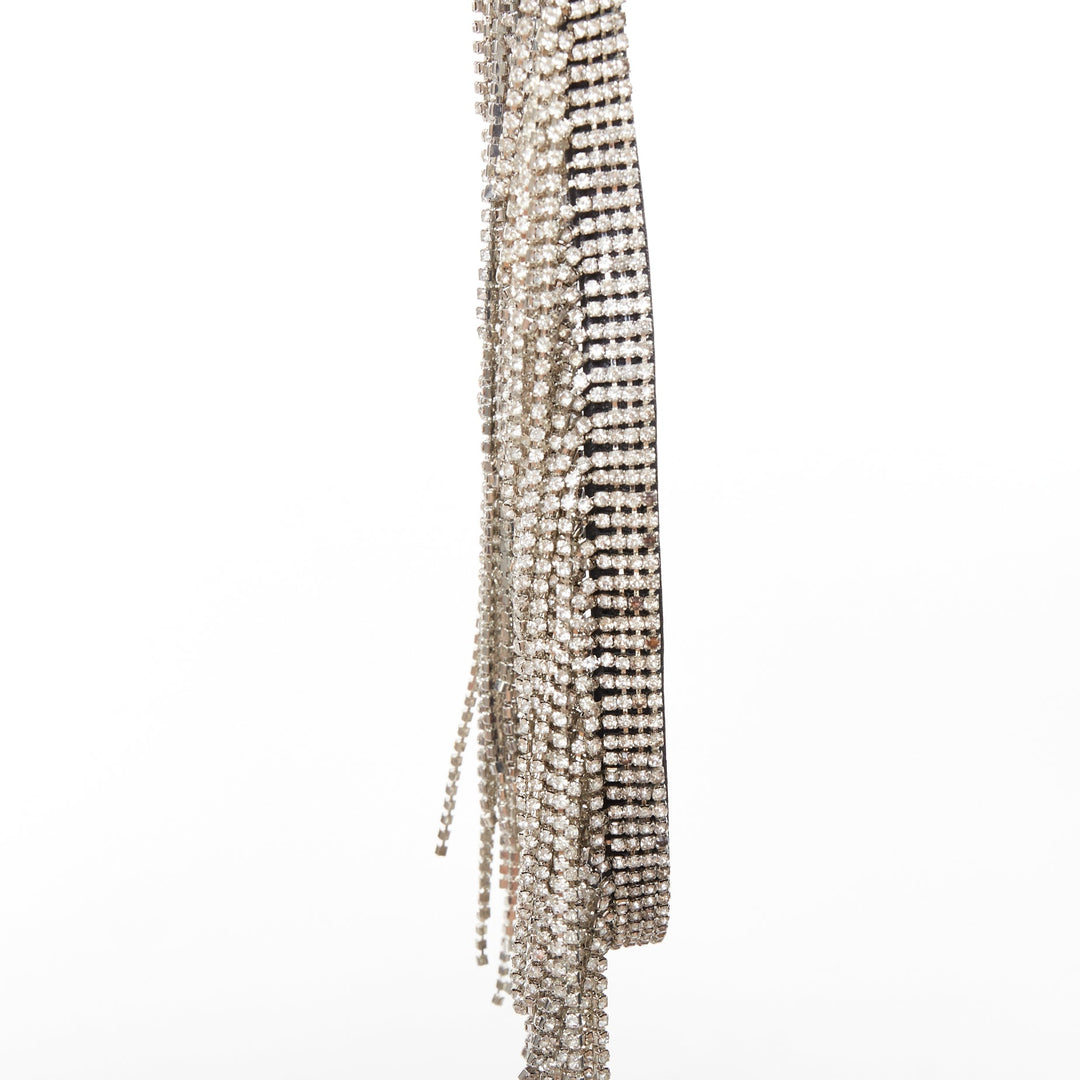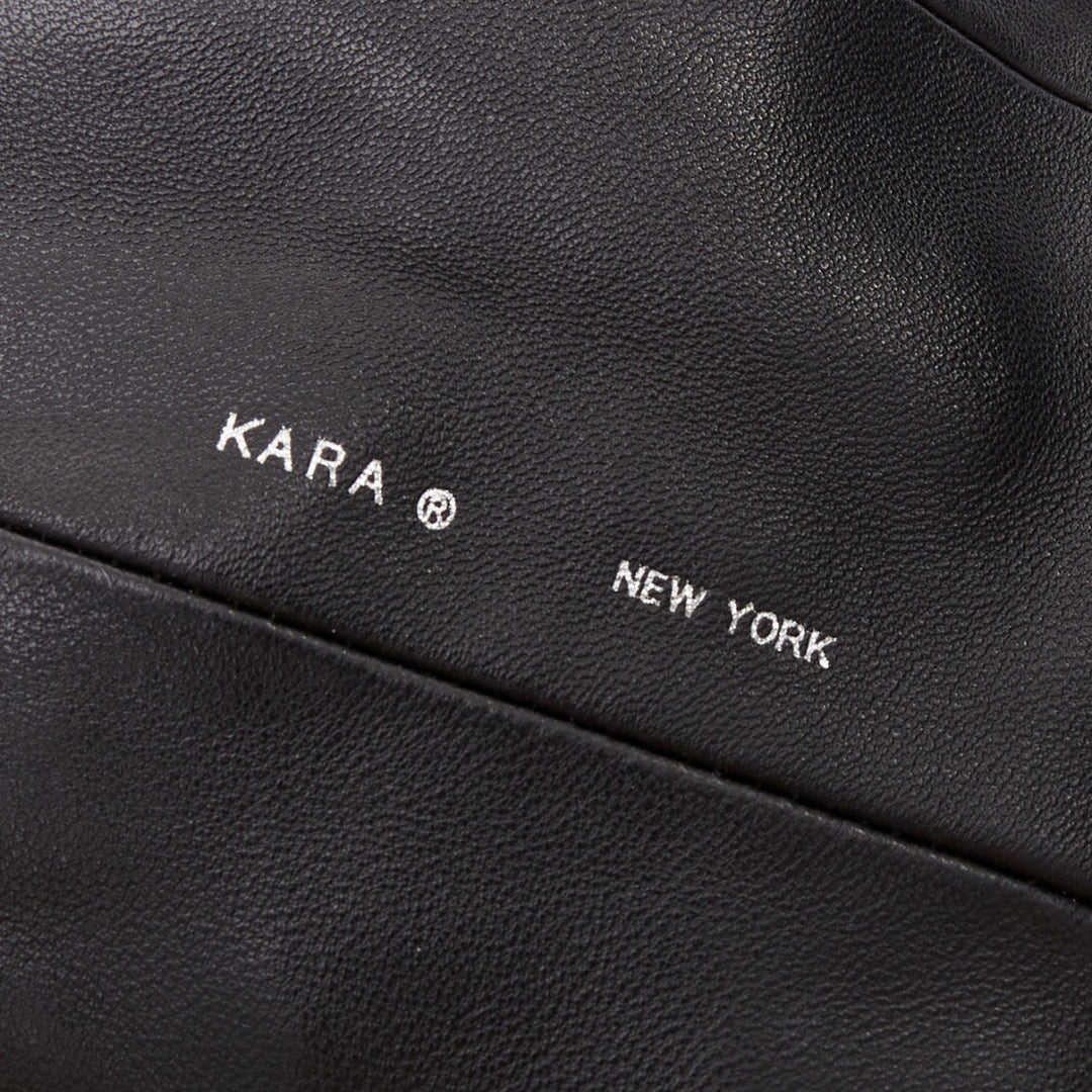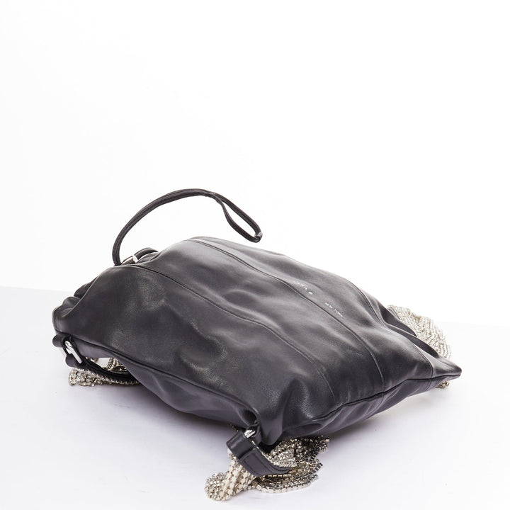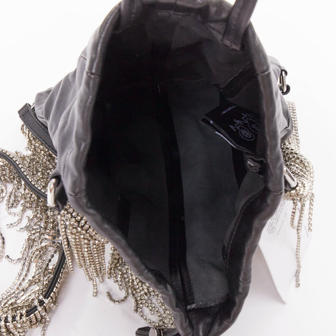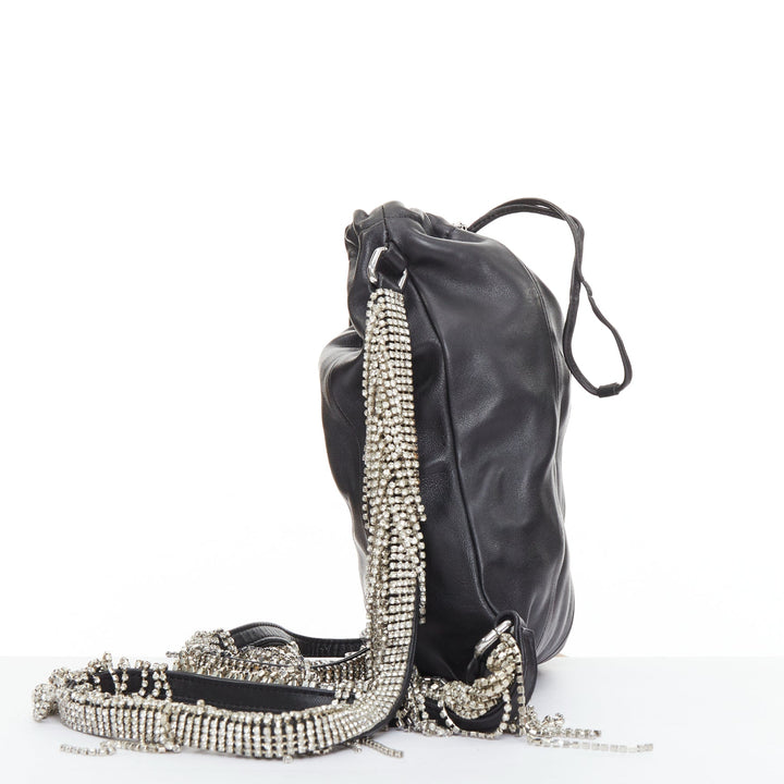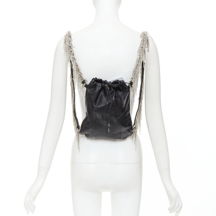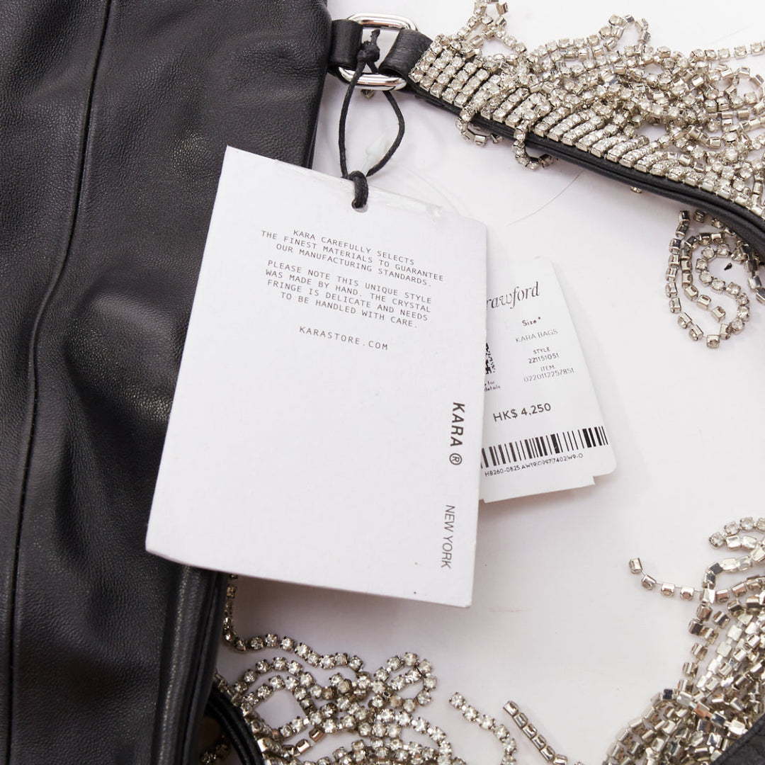KARA black leather white logo strass fringe crystal mini backpack bag