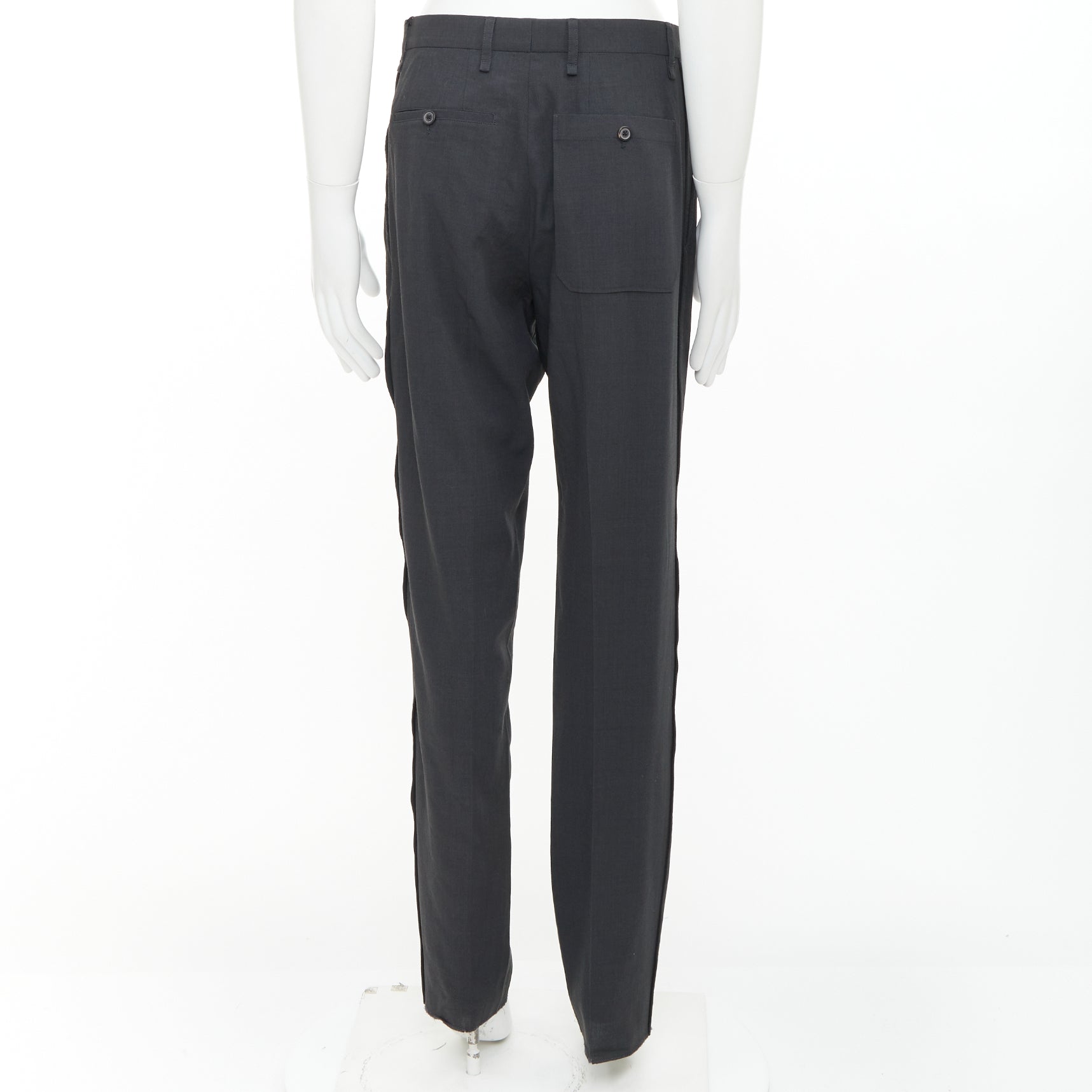 LANVIN grey viscose virgin wool pleated front drop crotch trousers FR44 XS