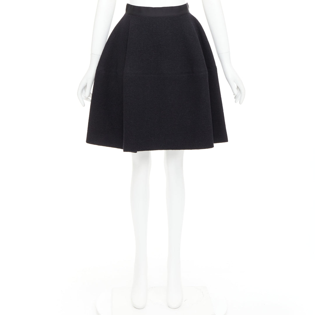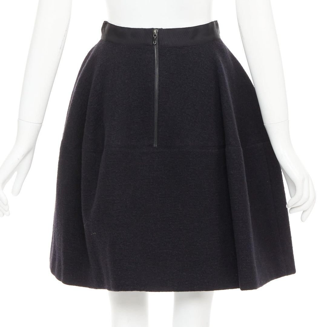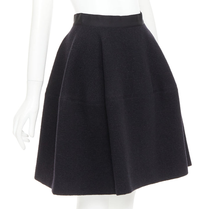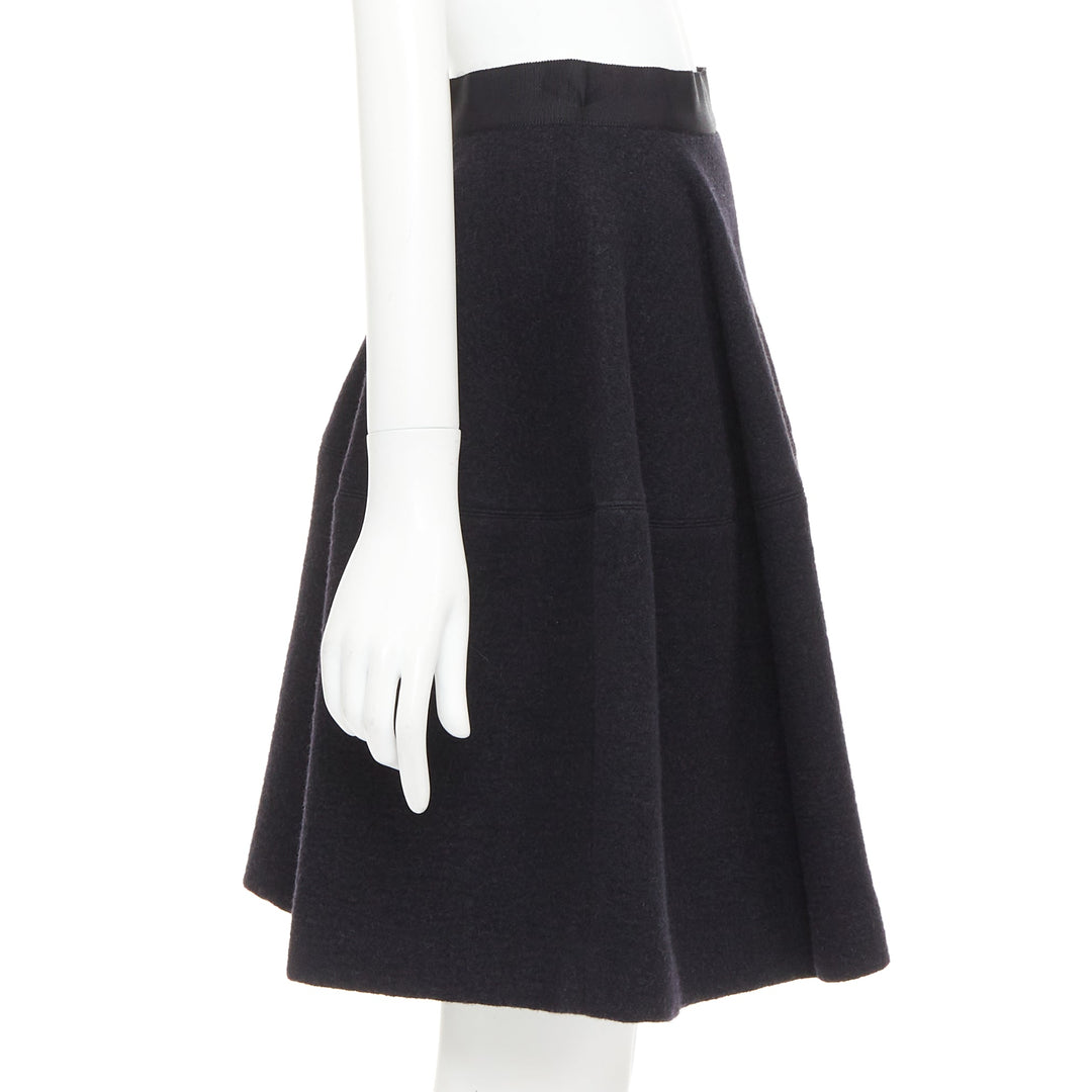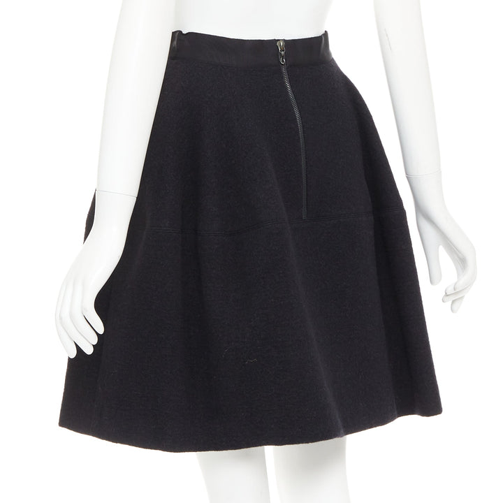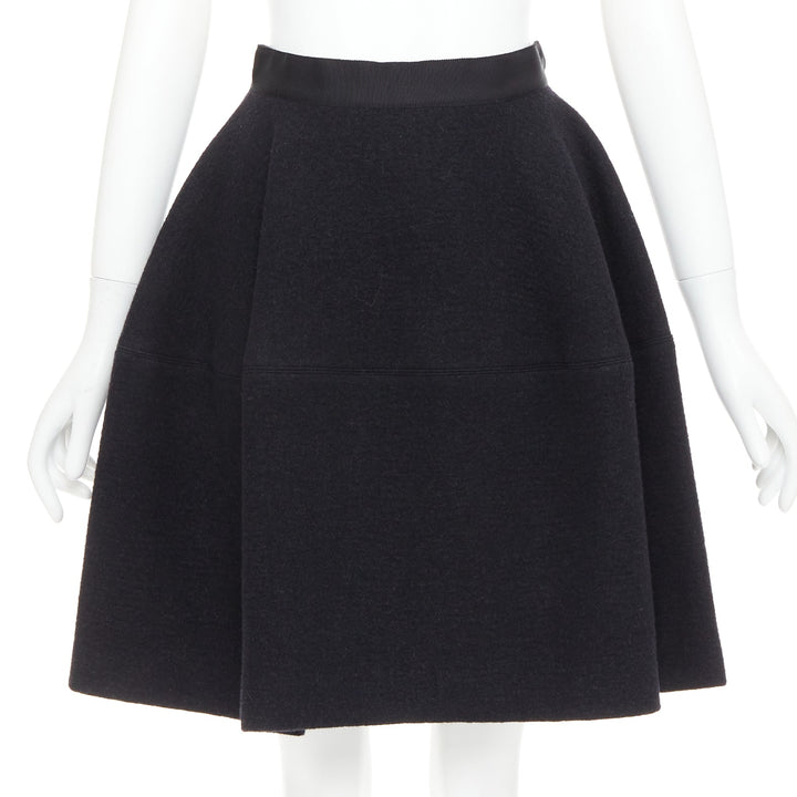 LANVIN grey wool blend black waistband constructed bell shaped skirt FR34 XS