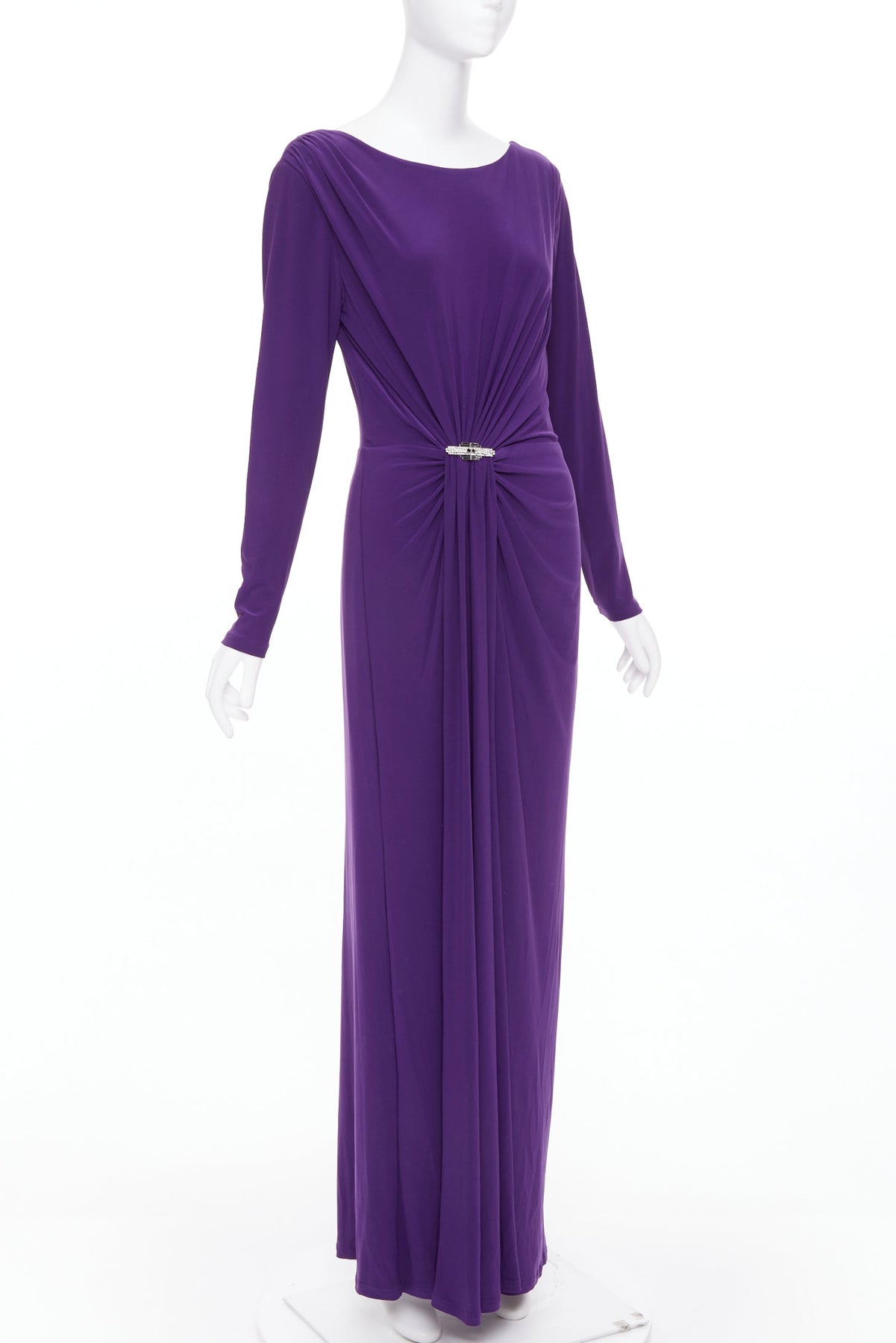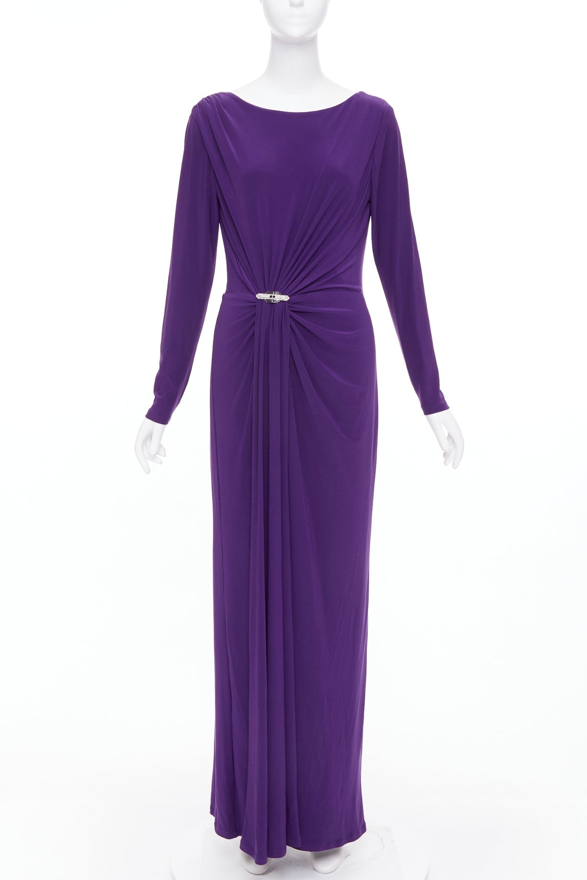 LAUREN BY RALPH LAUREN purple jersey silver strass buckle drape grecian evening gown US12 XXL