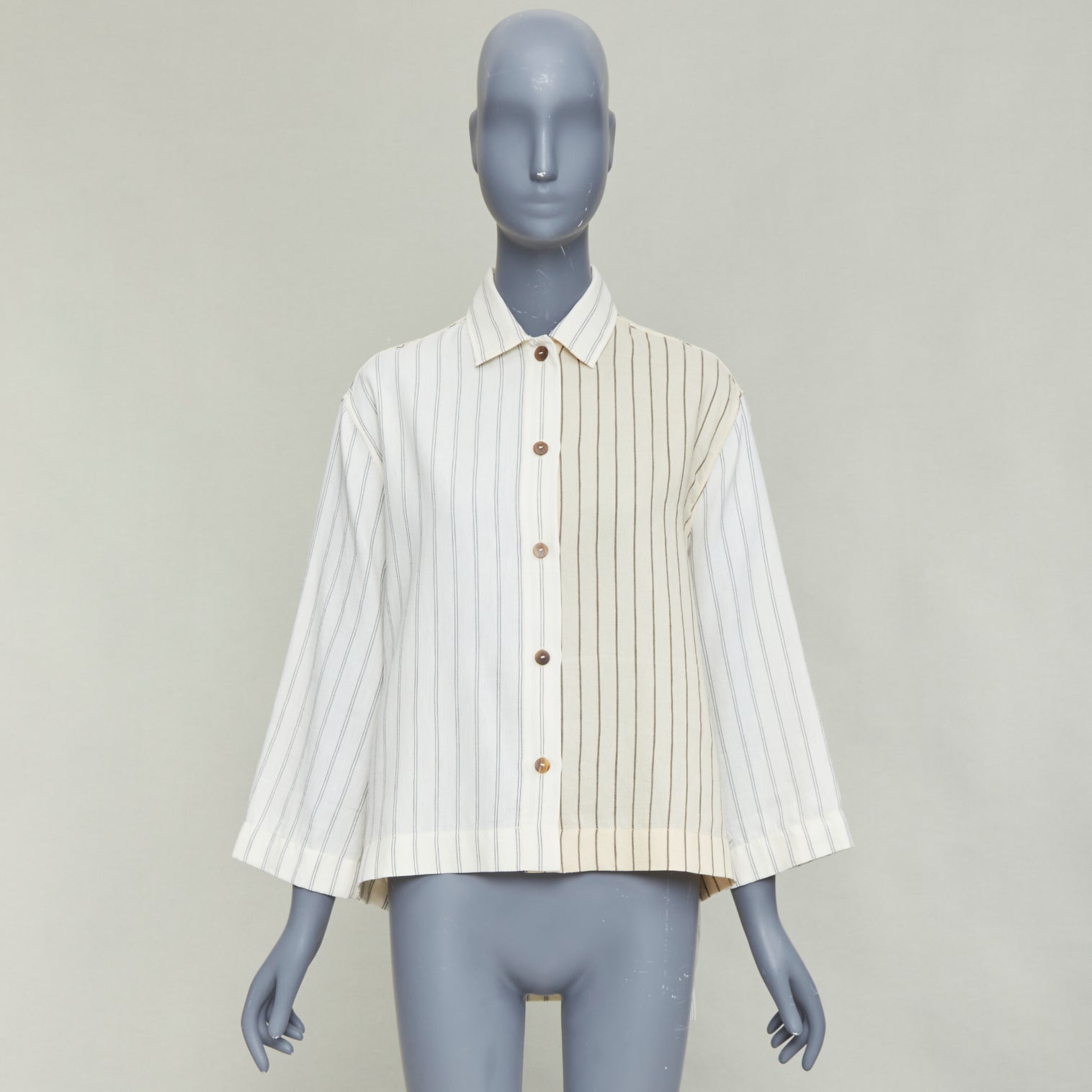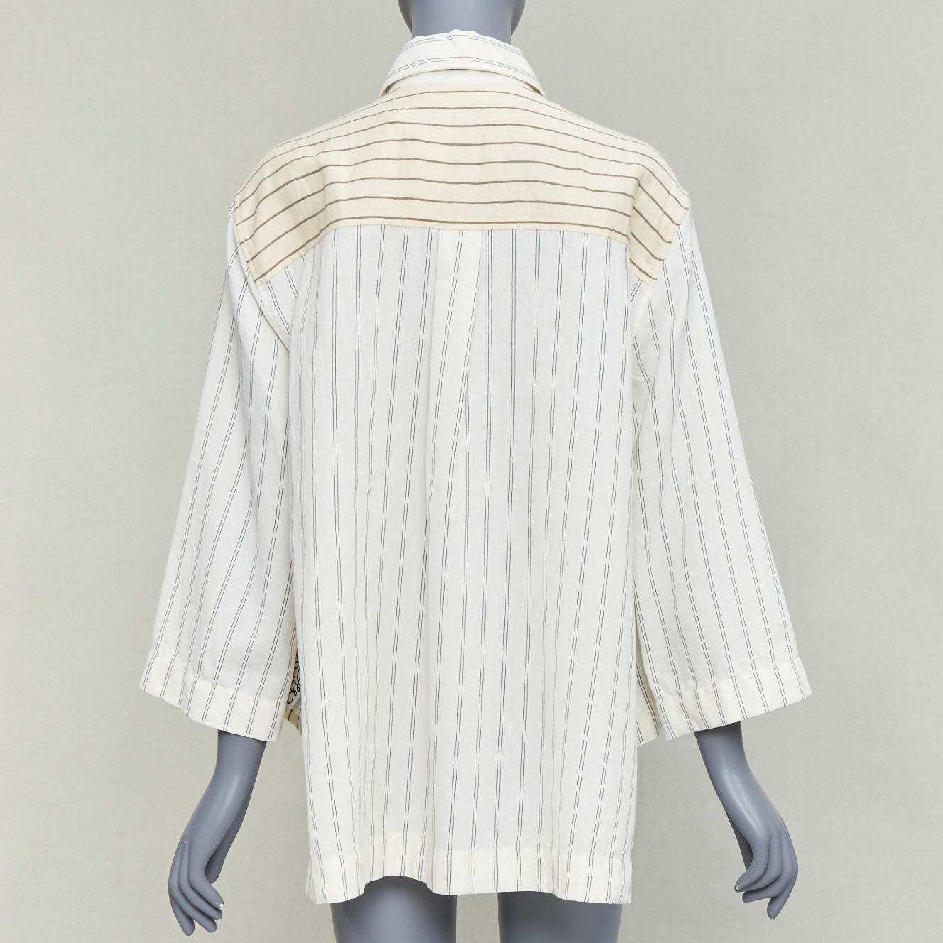 LOEWE JW ANDERSON cream cotton linen pinstripes boxy cropped shirt FR34 XS