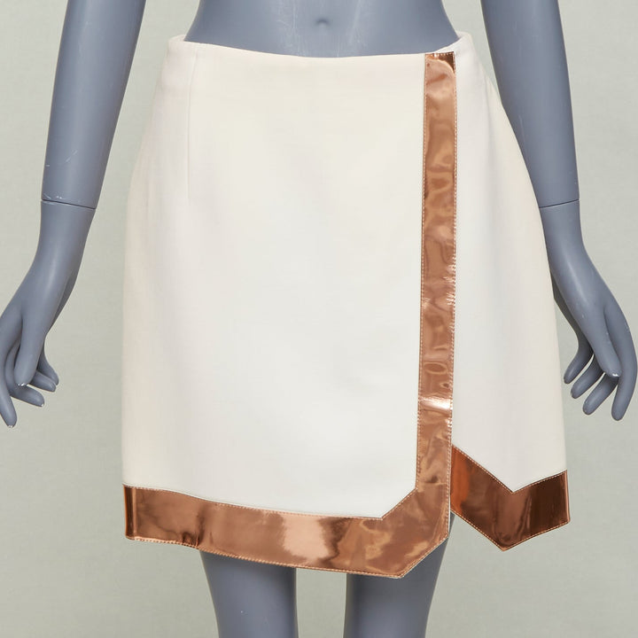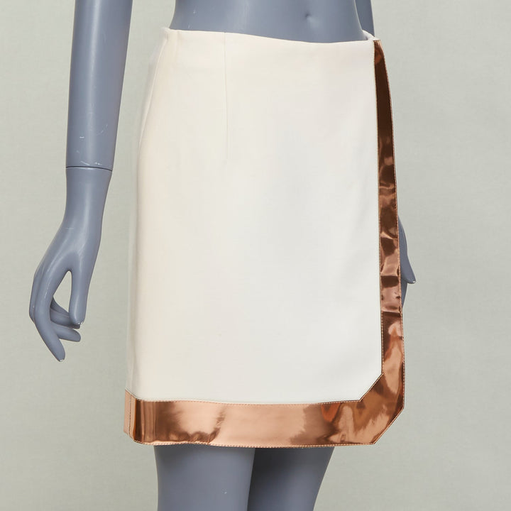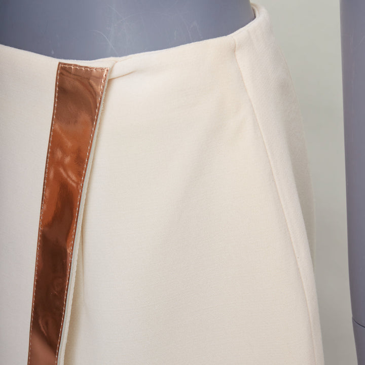 MUGLER cream virgin wool metallic copper PVC edge tulip skirt FR38 M