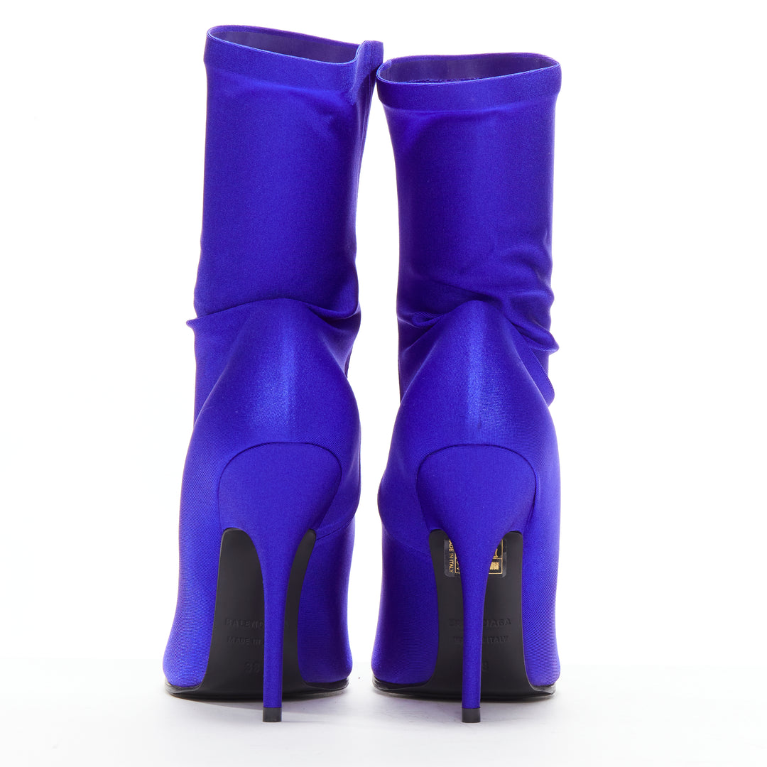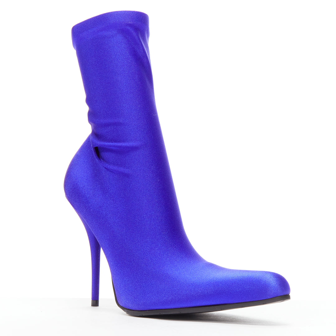 new BALENCIAGA Demna blue lycra high heeled sock boots EU36 Kim Kardashian