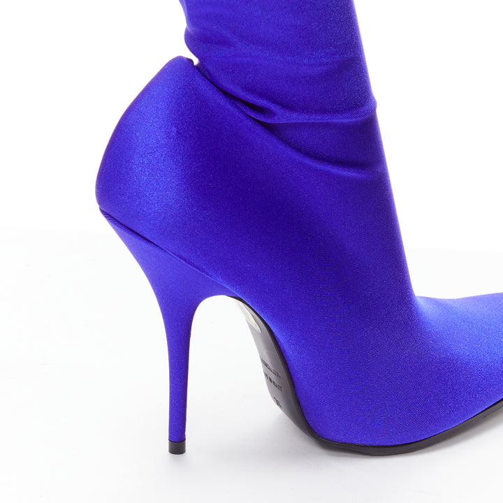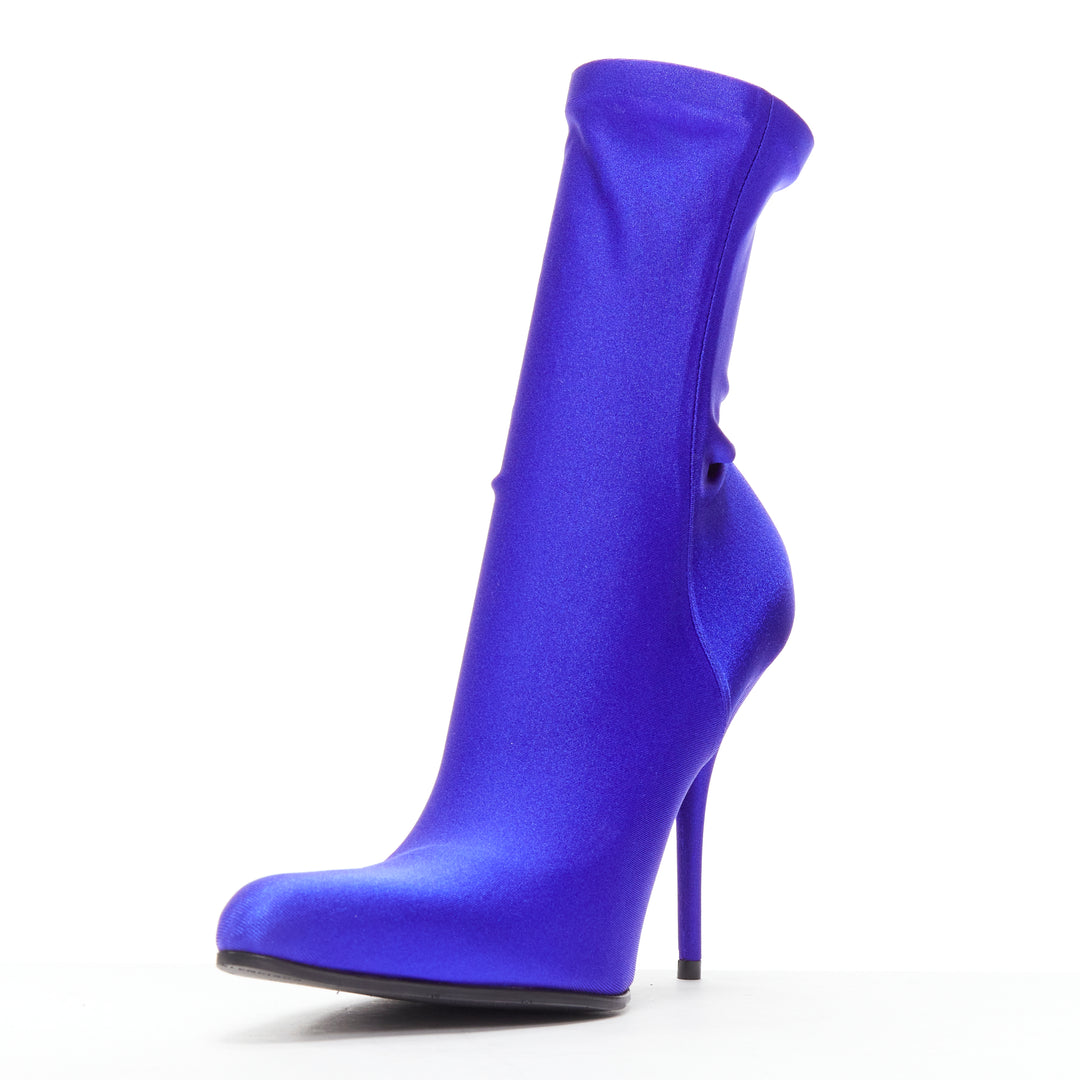 new BALENCIAGA Demna blue lycra high heeled sock boots EU38 Kim Kardashian