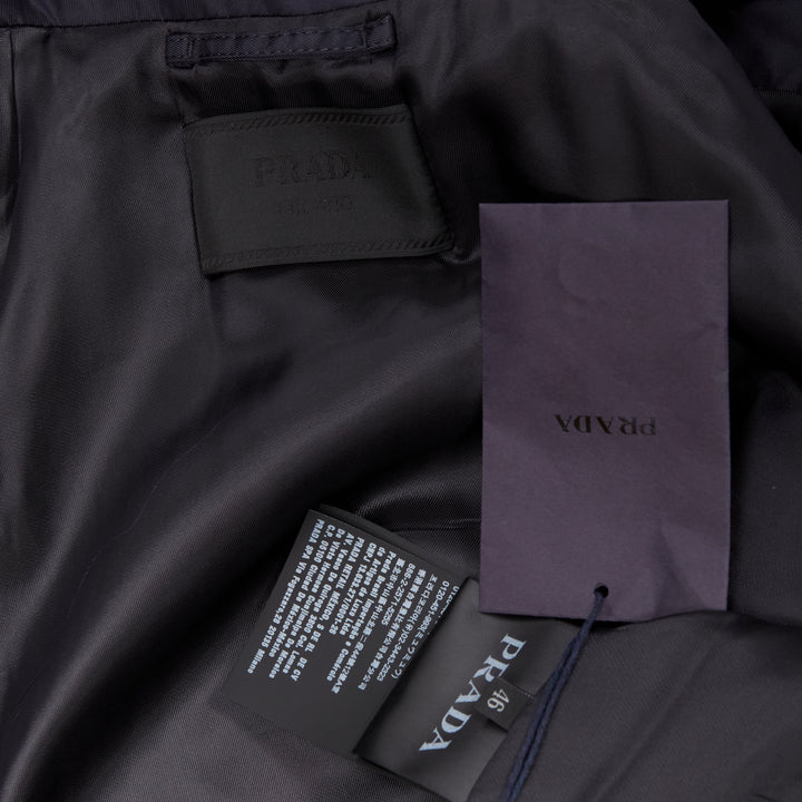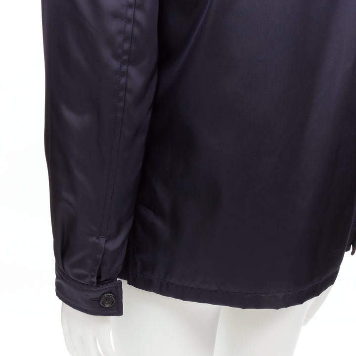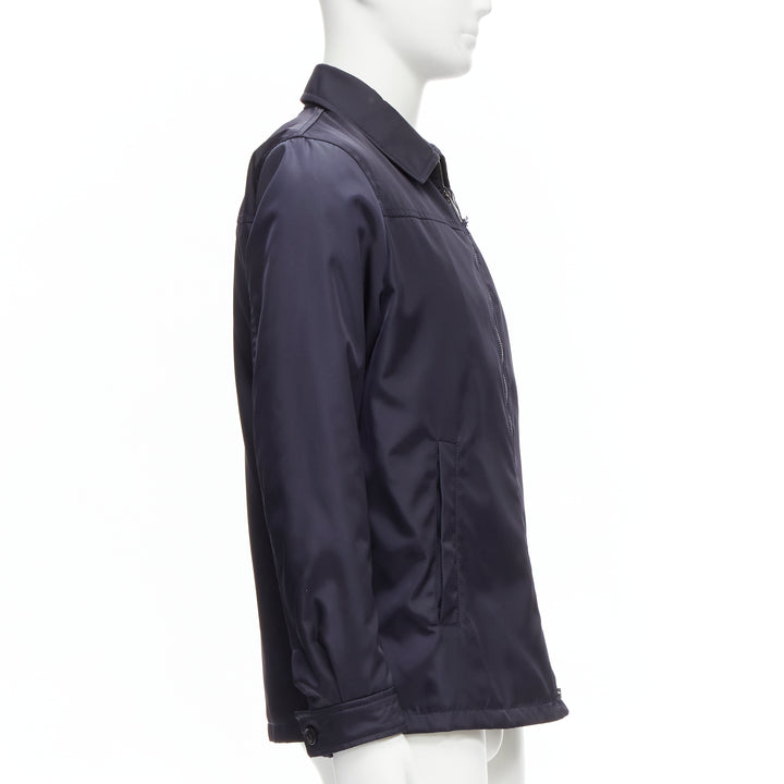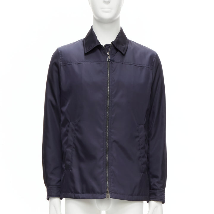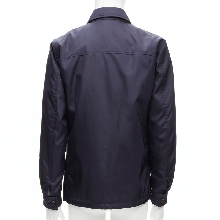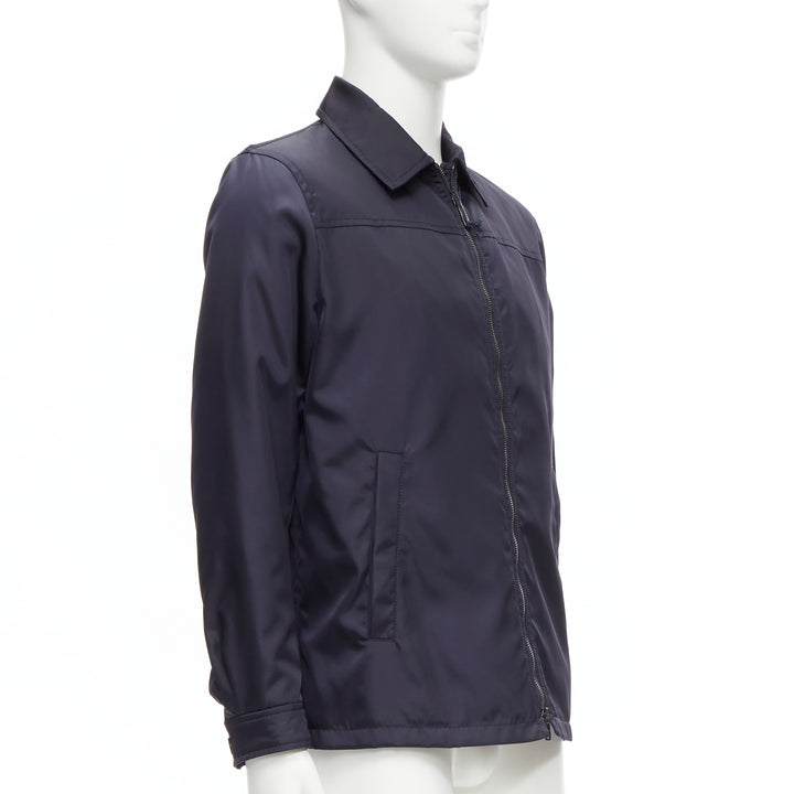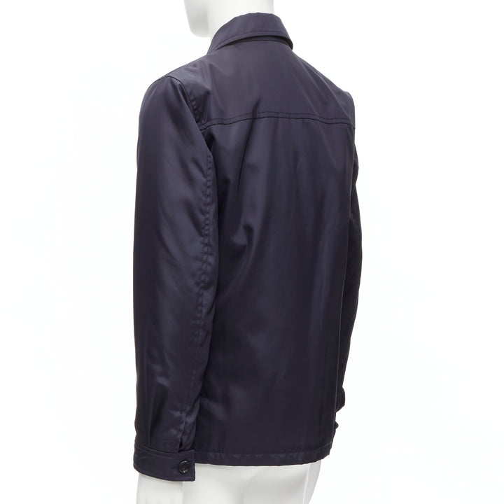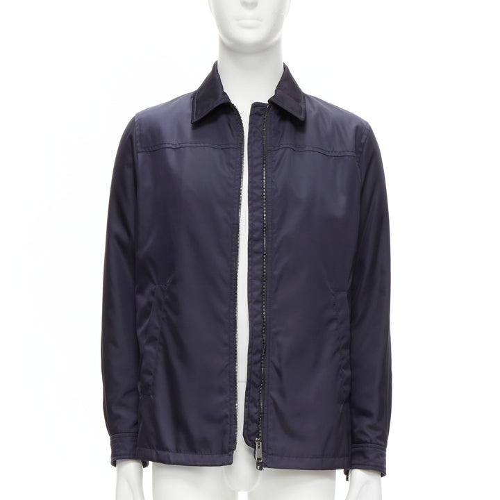 new PRADA 2019 navy blue nylon zip front dual pocket minimal jacket IT46 S