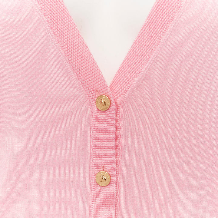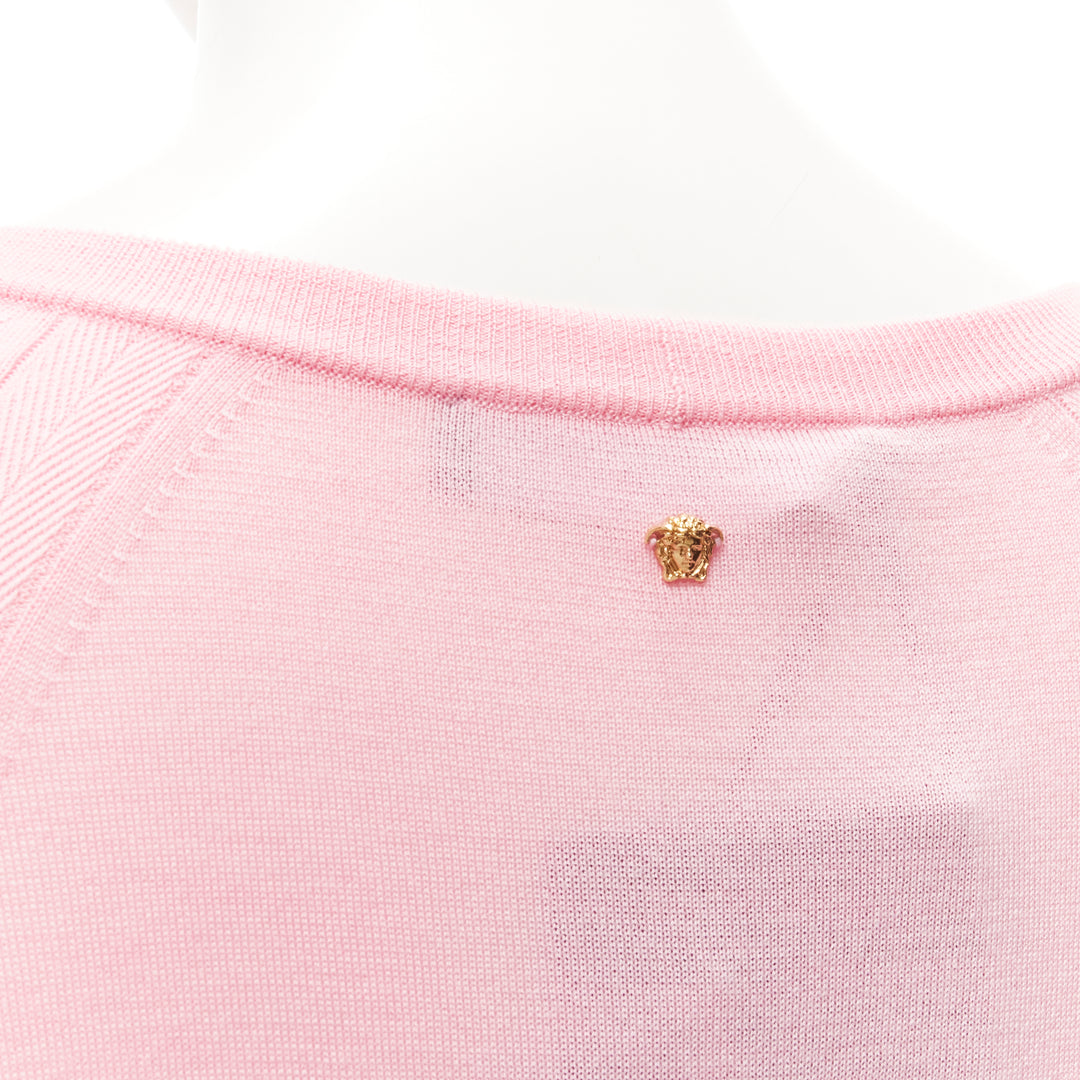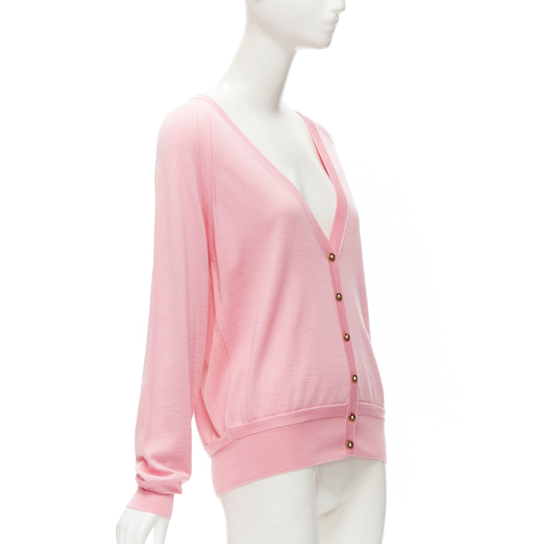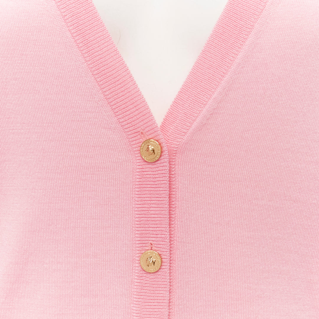 new VERSACE 2020 Medusa buttons pink wool cashmere silk cardigan IT44 L