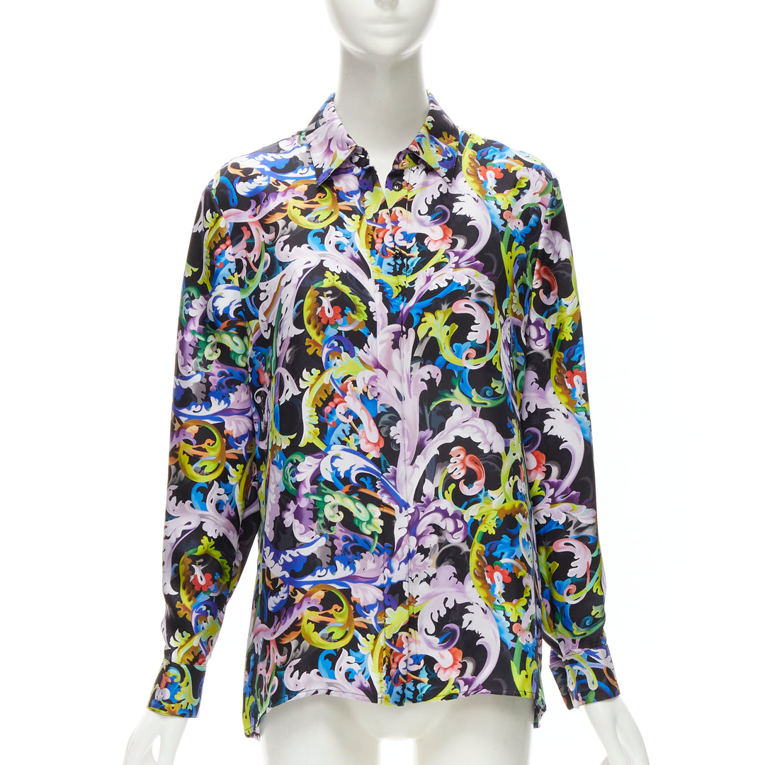 new VERSACE 2021 Runway Baroccoflage 100% silk gold Medusa shirt IT42 M