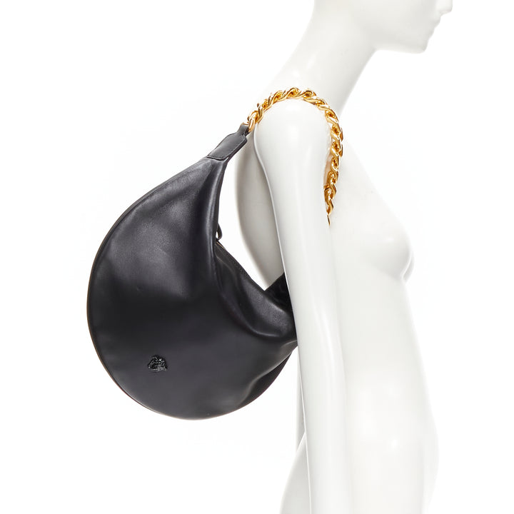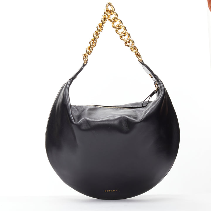 new VERSACE Runway black medusa lamb leather gold tone chain hobo top handle bag