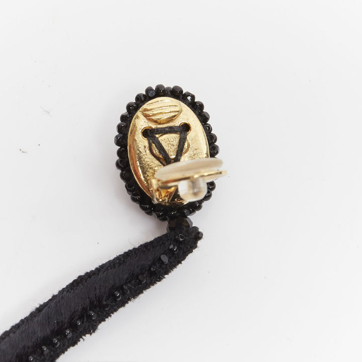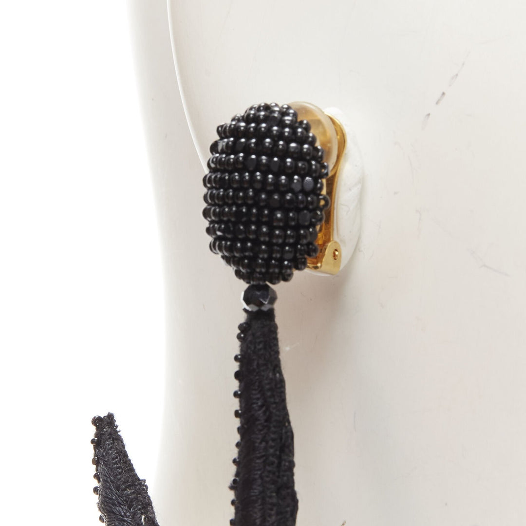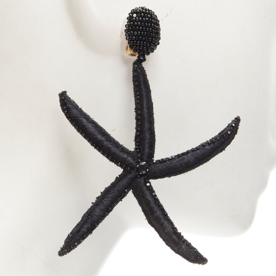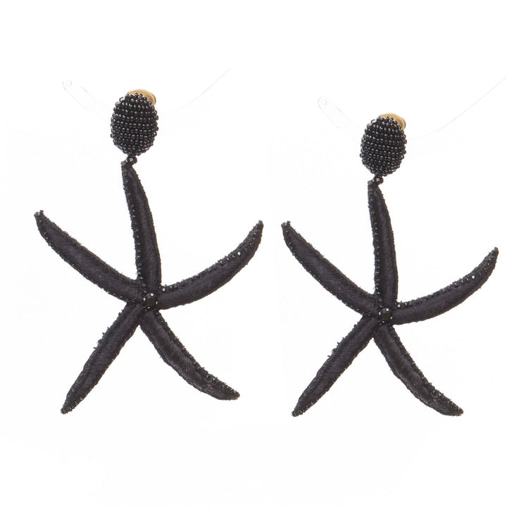 OSCAR DE LA RENTA black Large Starfish bead embellished clip on earrings