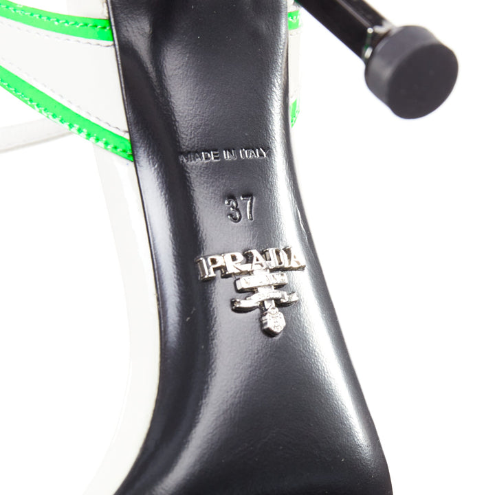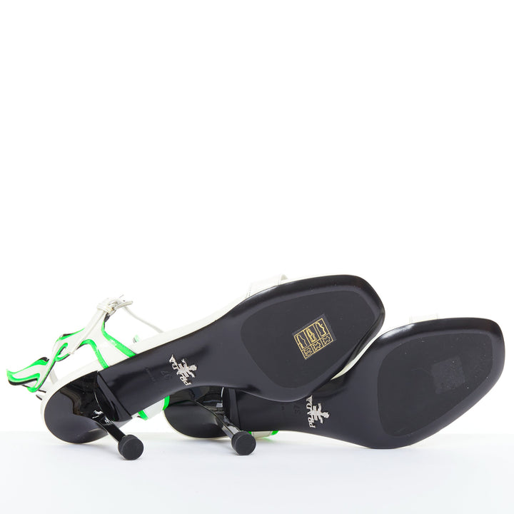 PRADA 2018 Hot Flame Acid Fire white green patent leather mid heel sandal EU37