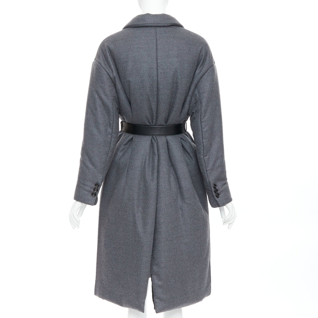 PRADA 2022 grey cashmere wool leather logo belt padded coat IT36 XS