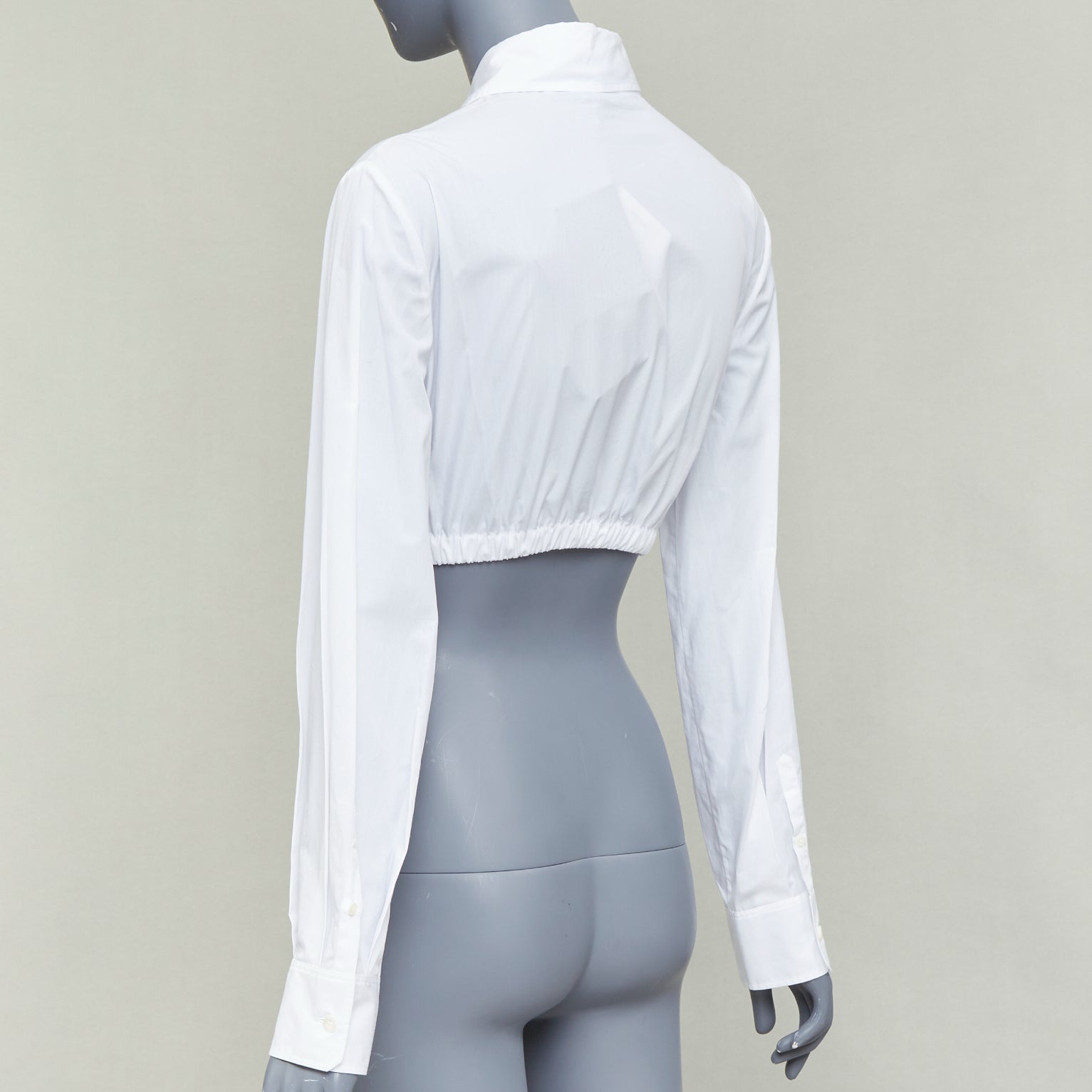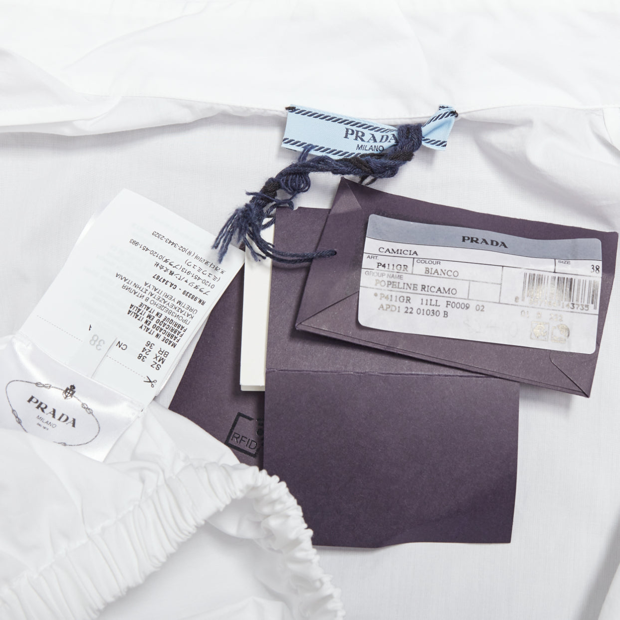 PRADA 2022 white cotton cream lace trim hollow logo cropped shirt IT38 XS