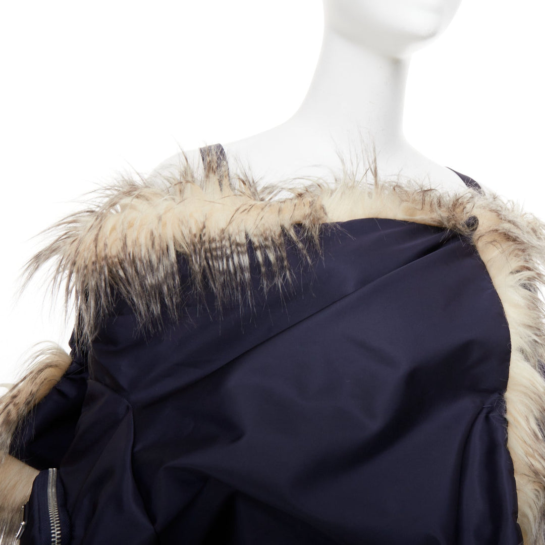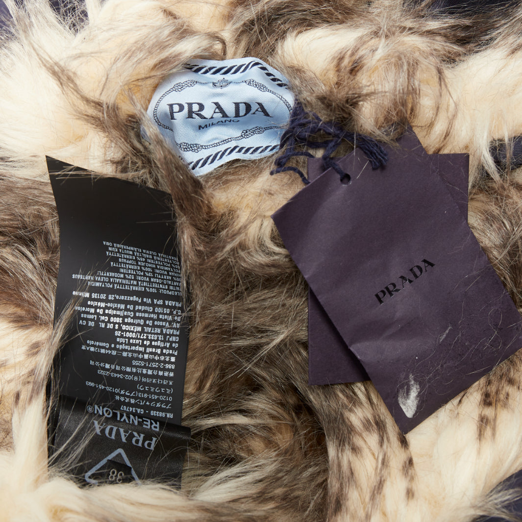 rare PRADA 2021 Runway brown faux fur off shoulder bomber coat IT38 XS Rihanna