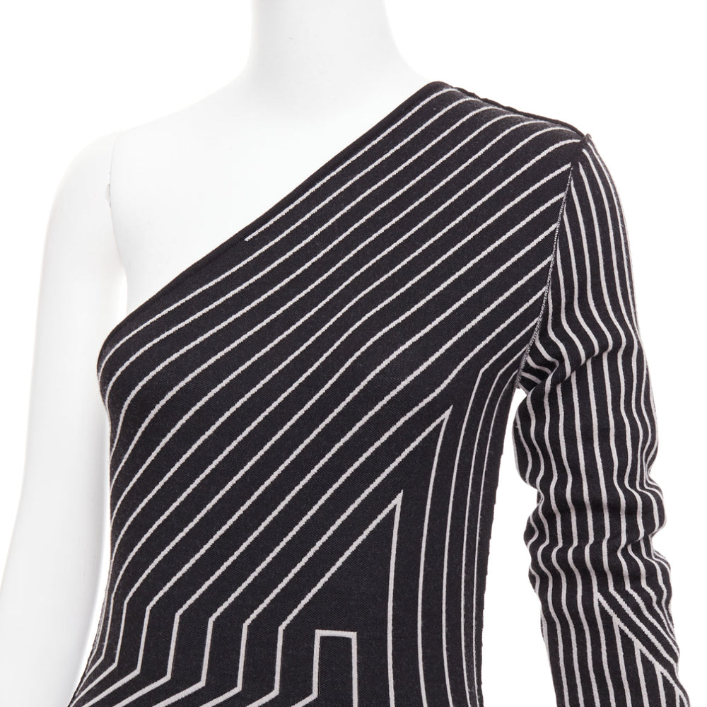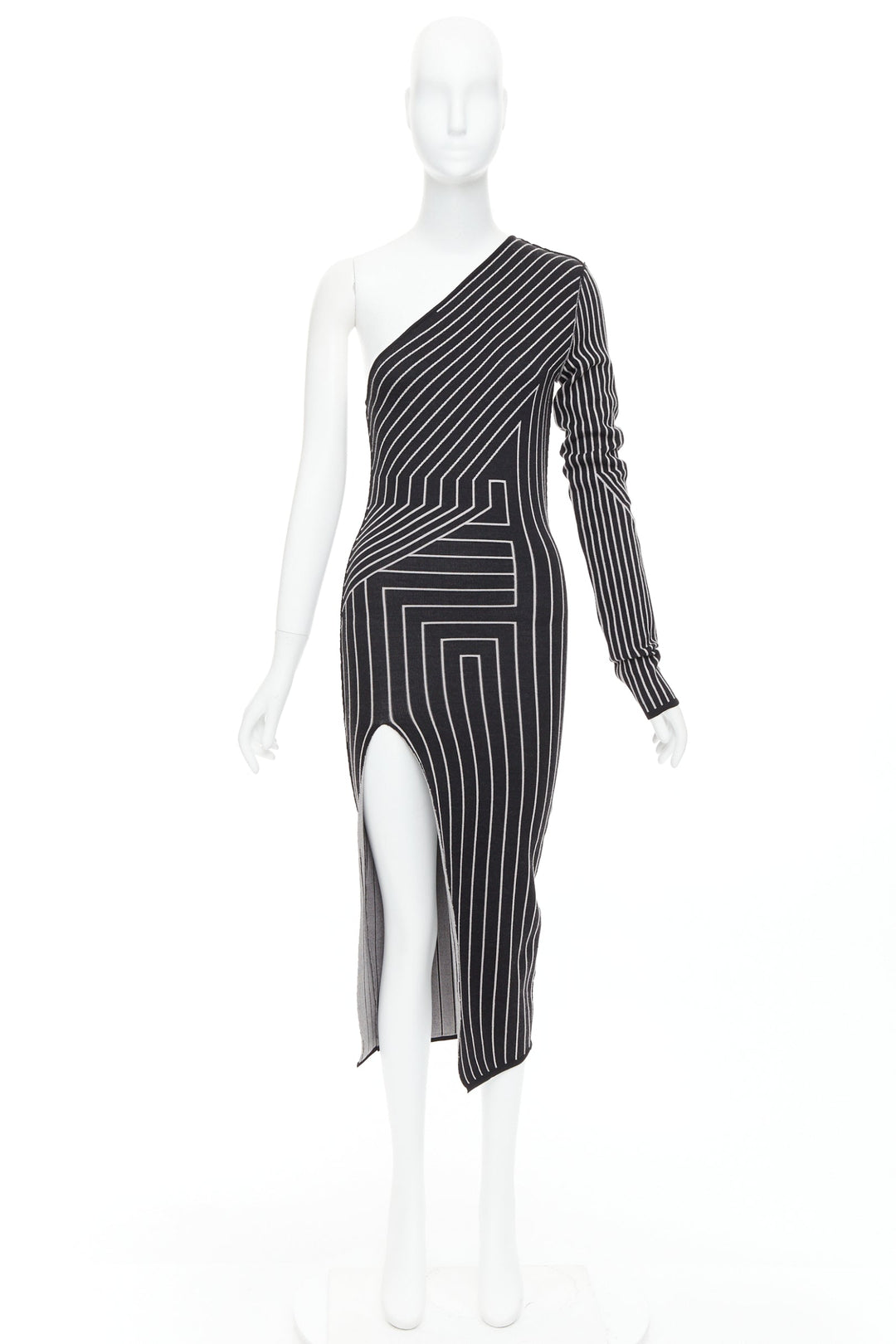 RICK OWENS 2020 Ziggy geometric graphic lines one shoulder high slit dress S Rosalia