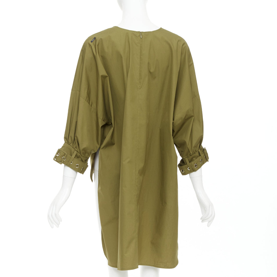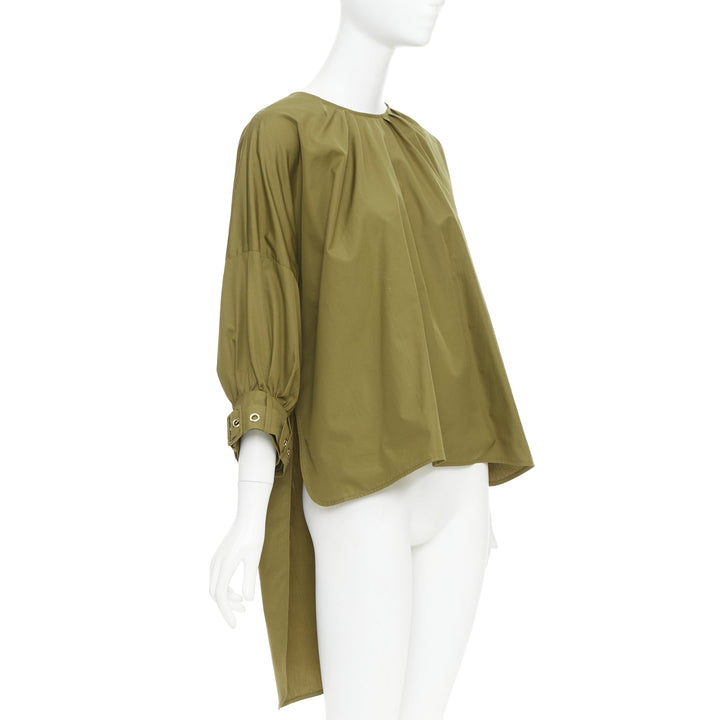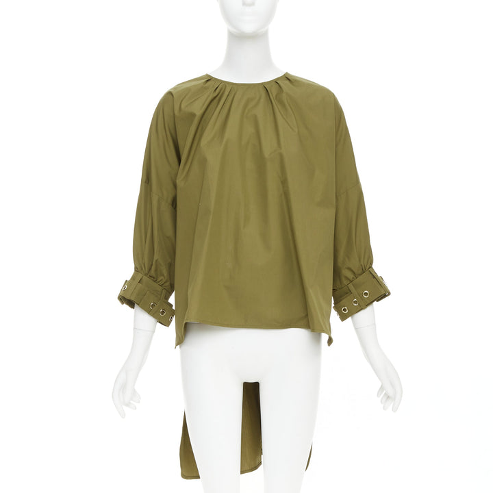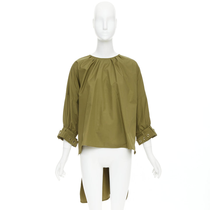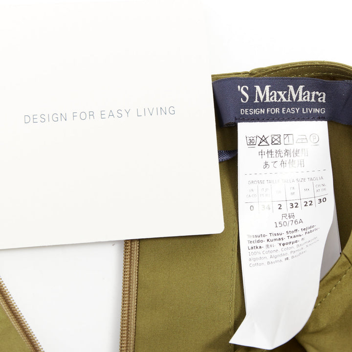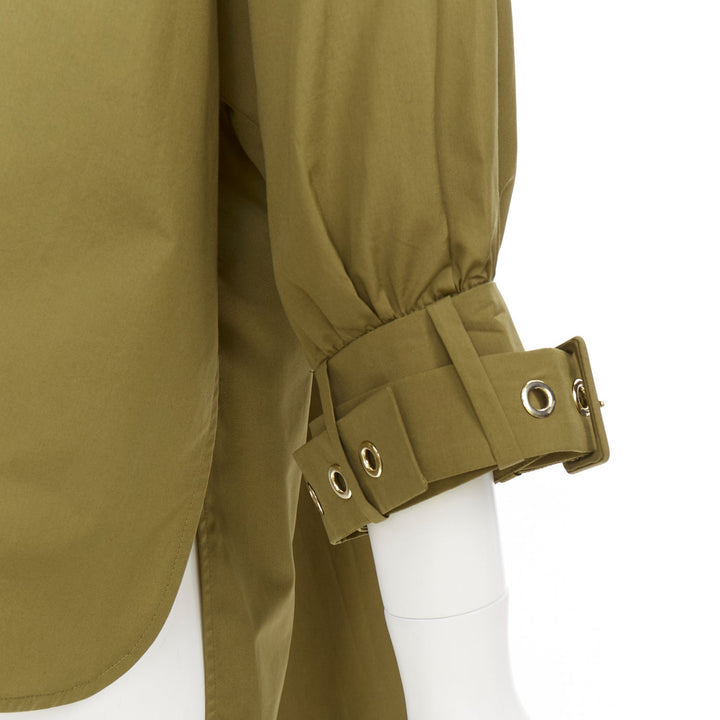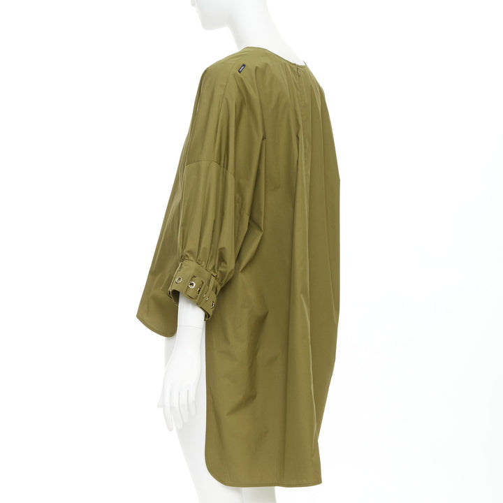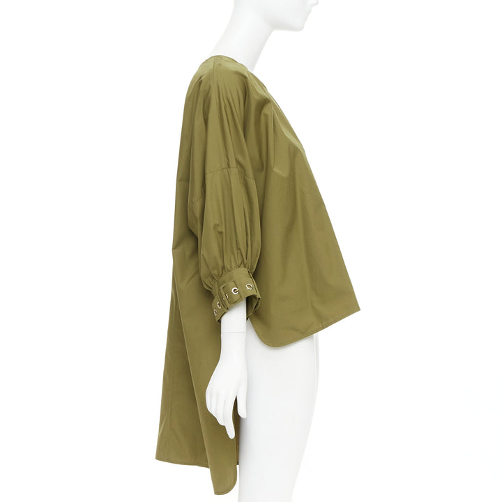 S' MAX MARA Maya khaki green cotton belted cuffs hi low tunic shirt top IT34 XXS