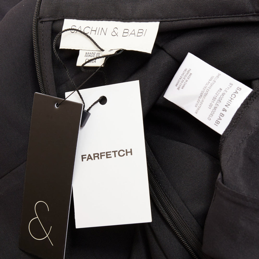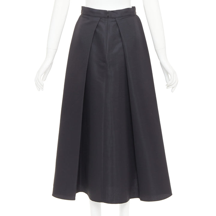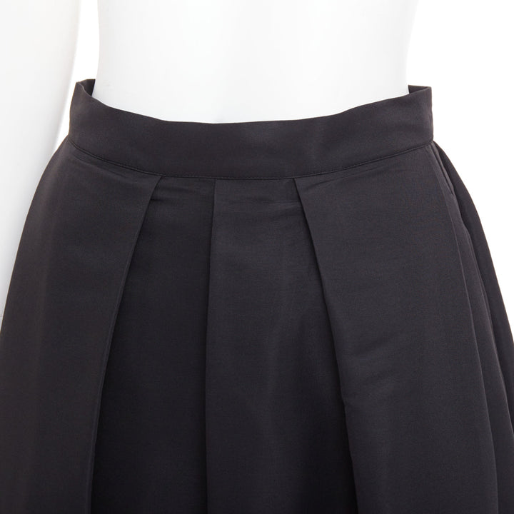 SACHIN AND BABI Leighton black satin crepe box pleat tea length flared skirt US2 S