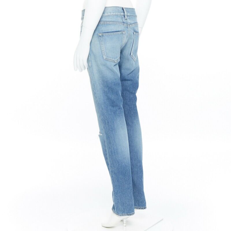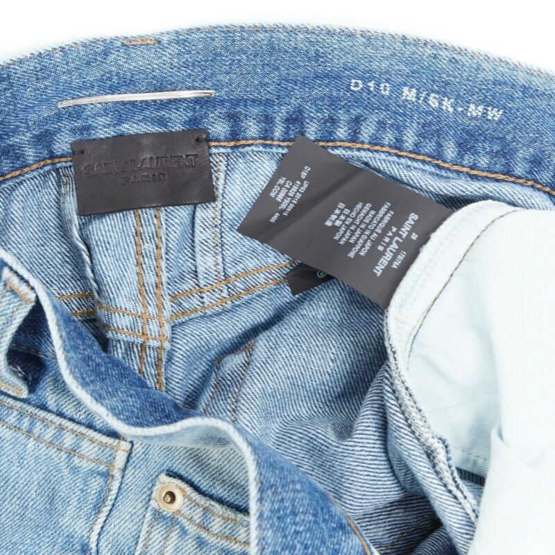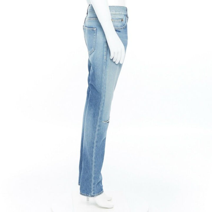 SAINT LAURENT Hedi Slimane blue cotton torn knee washed skinny denim jeans 29"