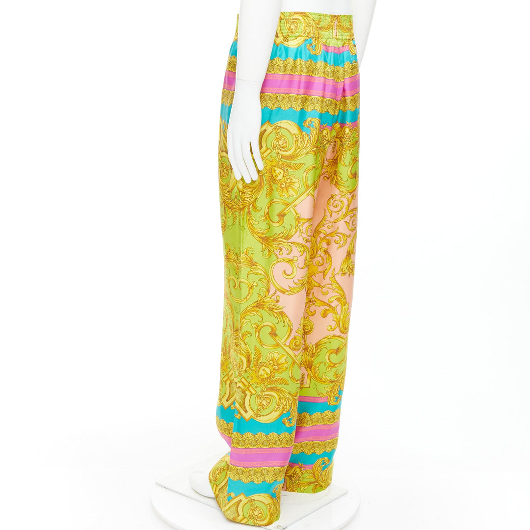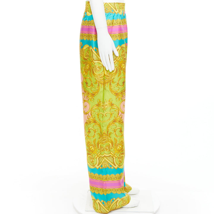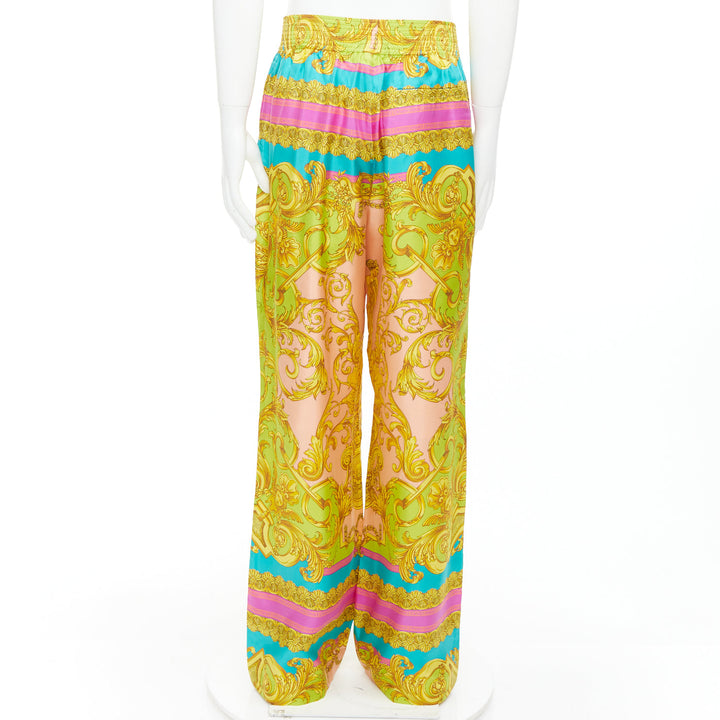 VERSACE Barocco Goddess 100% silk twill graphic print wide leg pants EU48 M