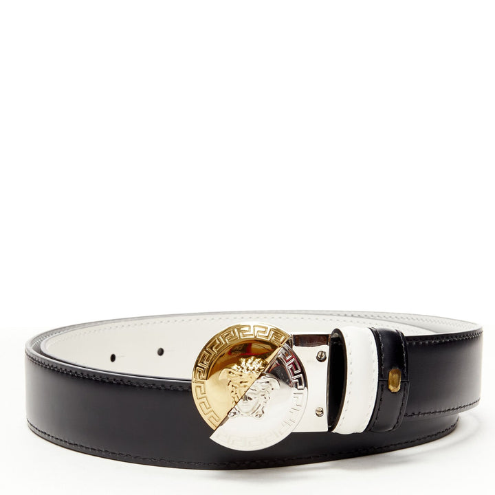 VERSACE Demi Medusa Reversible black white split coin belt 105cm 40-44"