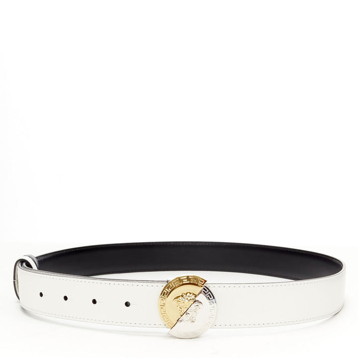 VERSACE Demi Medusa Reversible black white split coin belt 75cm-85cm