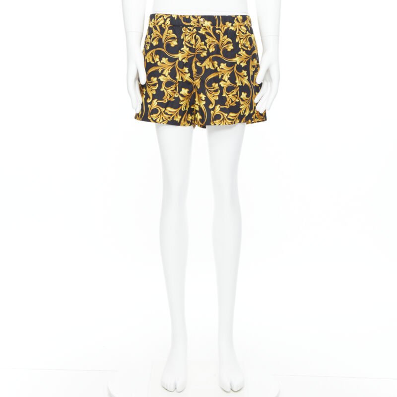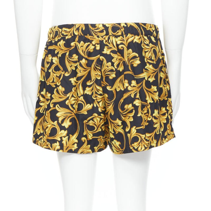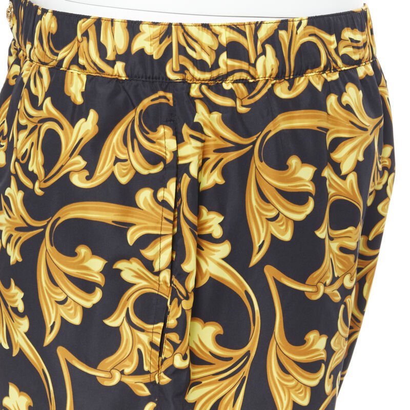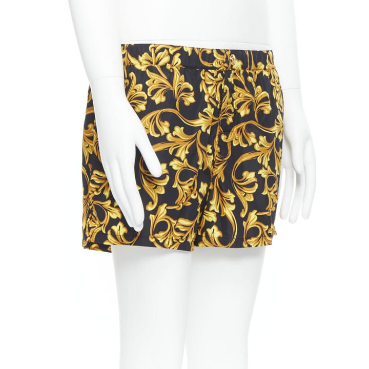 VERSACE gold Medusa button black floral barocco summer swim shorts IT6 L